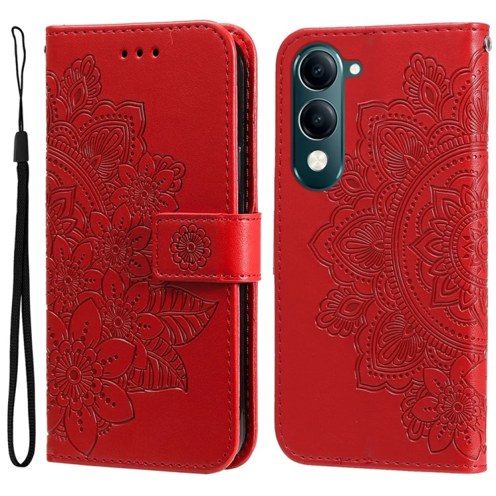 Virágos könyvtáska a Vivo Y29s 5G-hez - piros