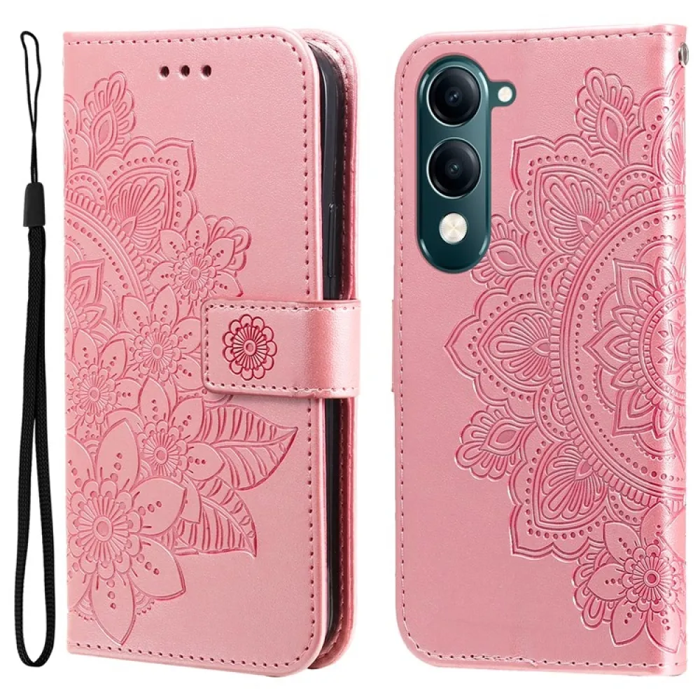 Rózsaszín virágos pénztárca tok a Vivo Y29s 5G-hez