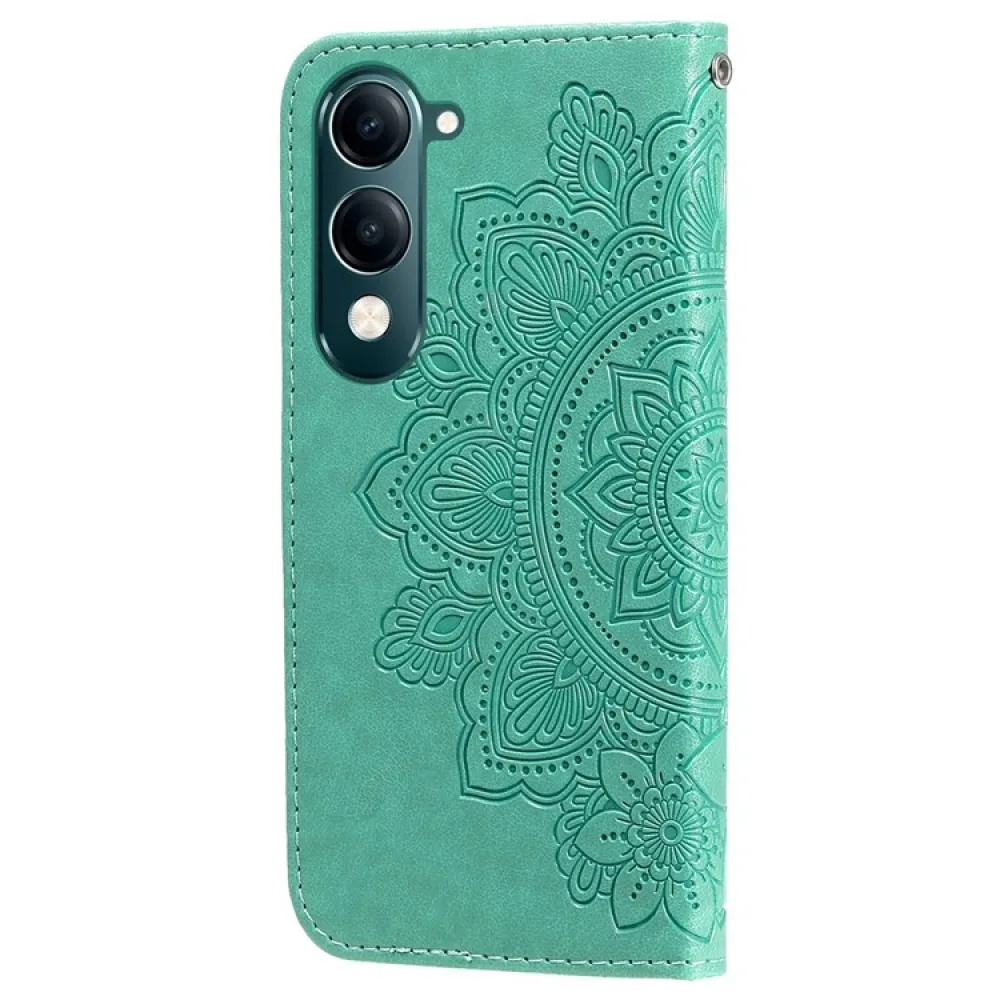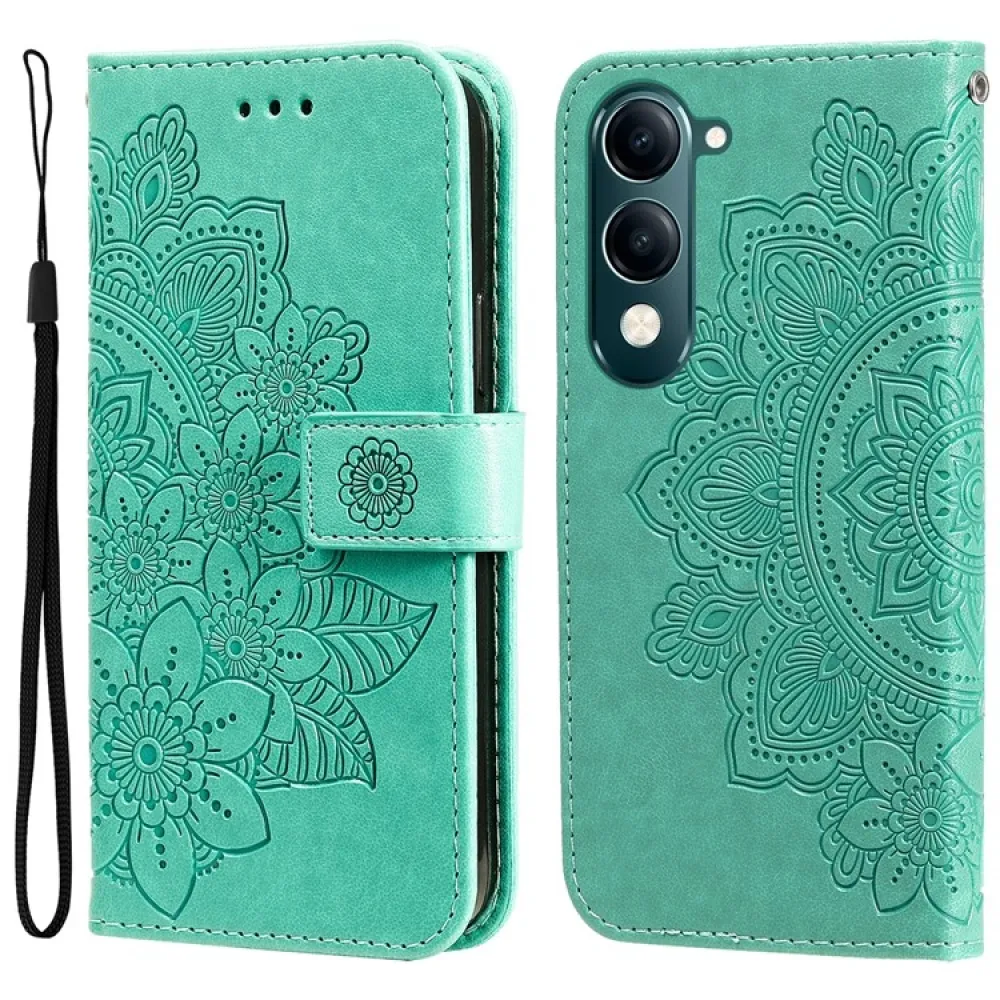 Virágos könyvtáska a Vivo Y29s 5G-hez - teal színű