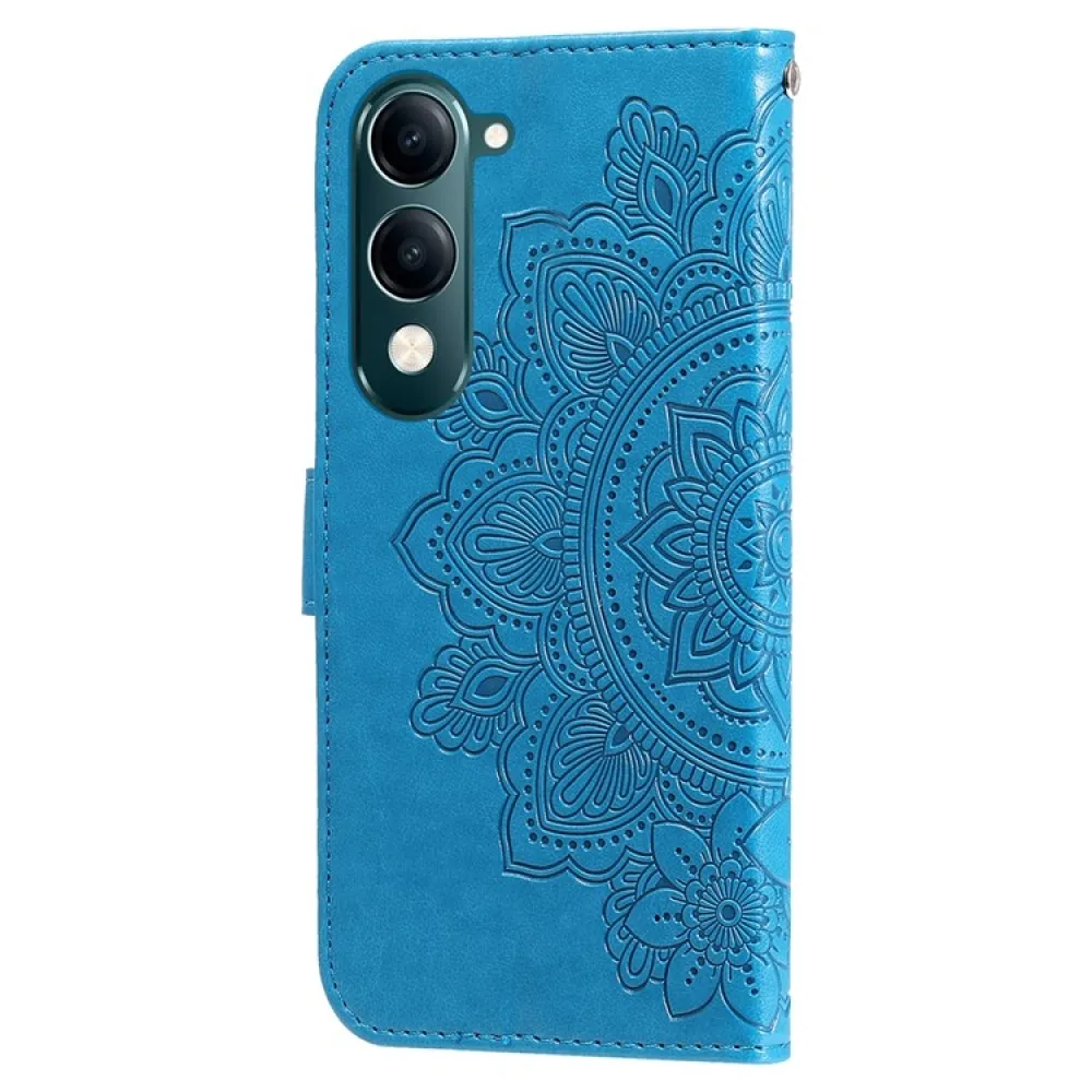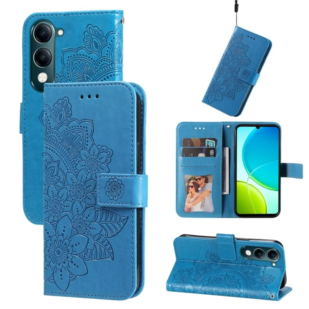 Kék virágos pénztárca tok a Vivo Y29s 5G-hez