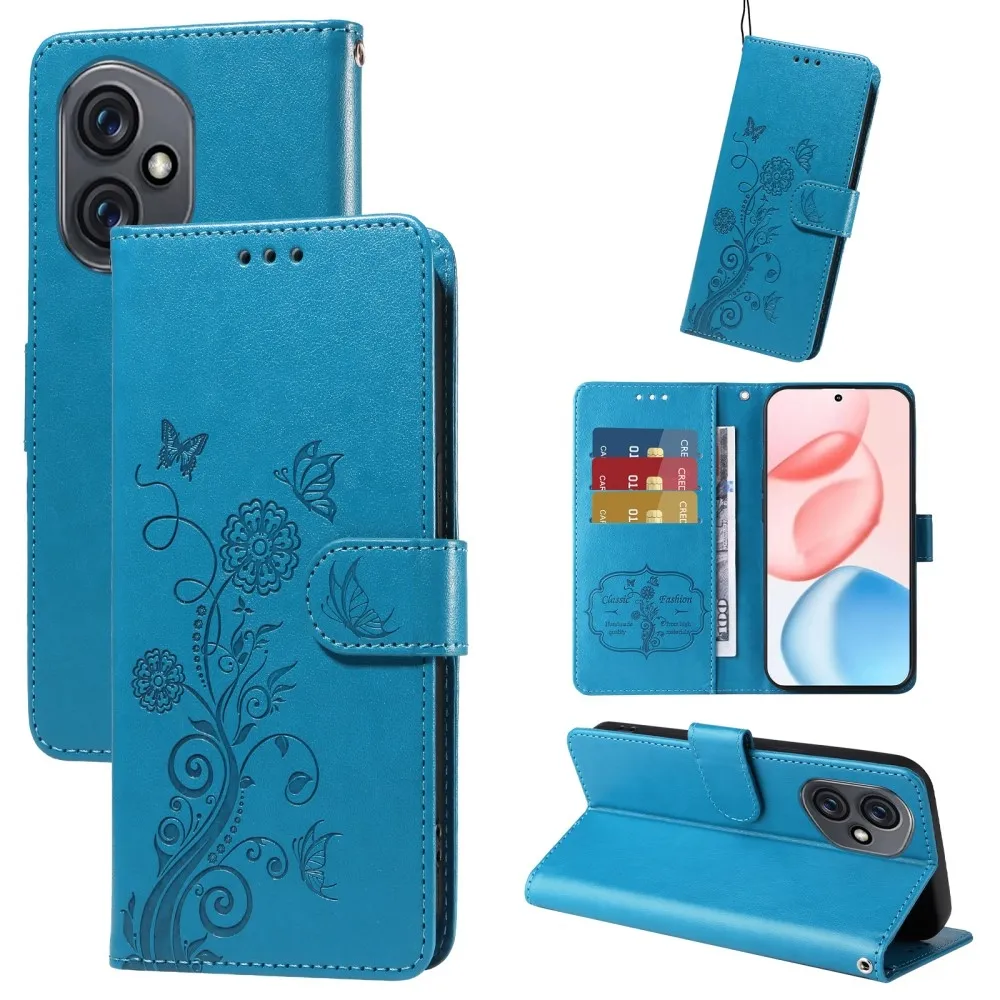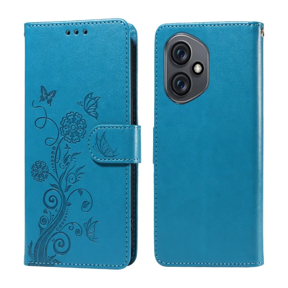 Kék pénztárca tok Virágos a Honor 400-hoz