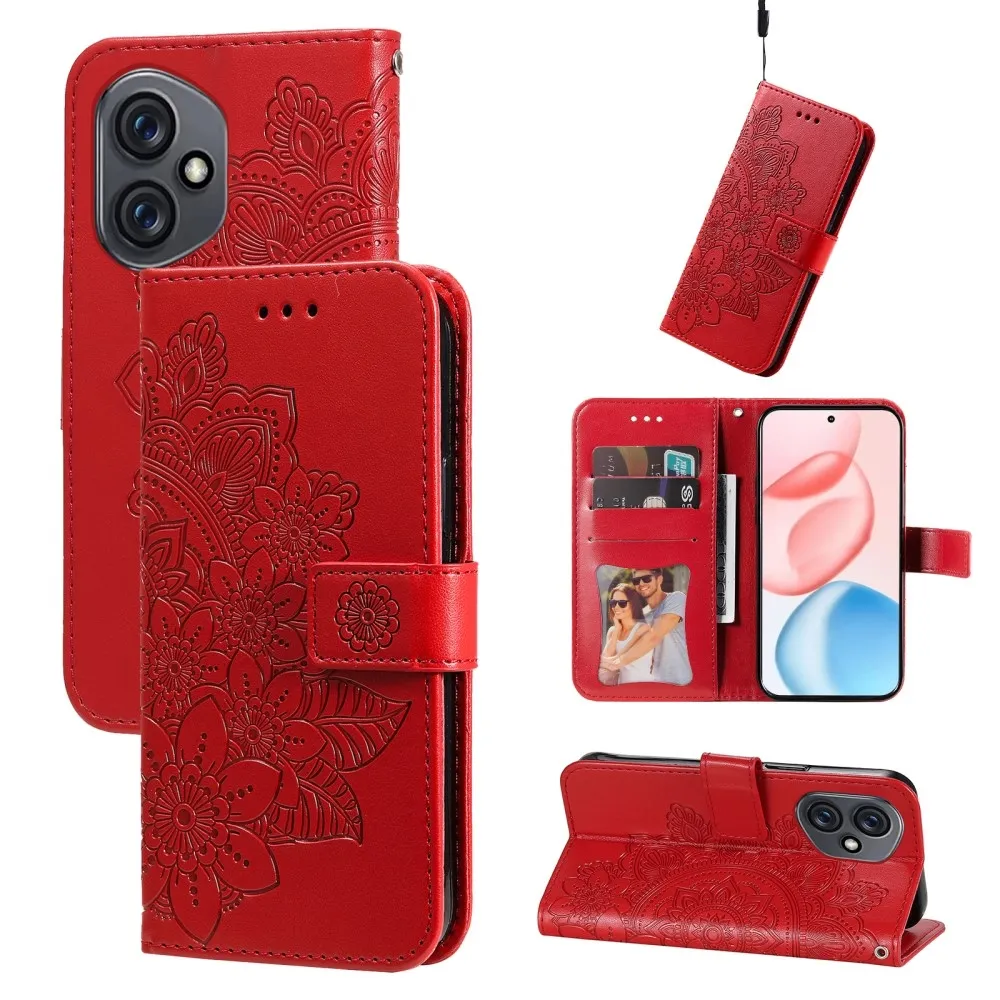 Piros pénztárca tok Floral a Honor 400-hoz
