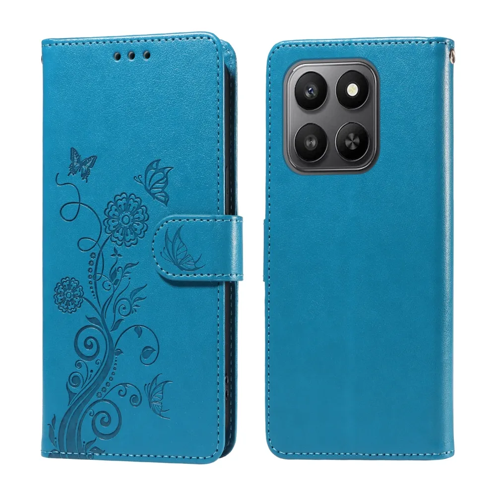 Kék pénztárca tok Virágos a Honor 400 Smart 5G/4G/Honor X7d számára
