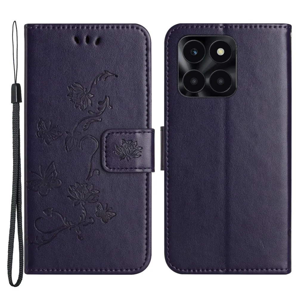 Sötét lila pénztárca tok Flower a Honor X6a számára
