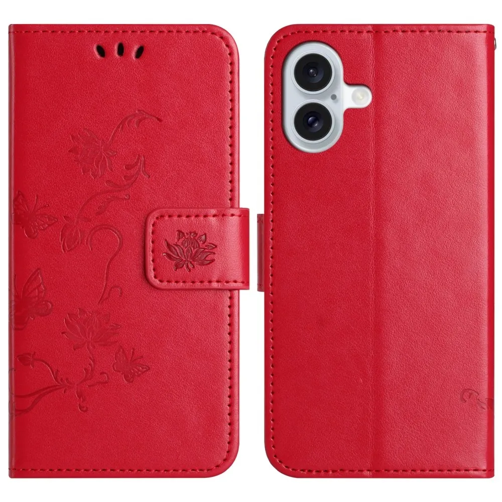 Virágos könyvtáska iPhone 16-hoz - piros