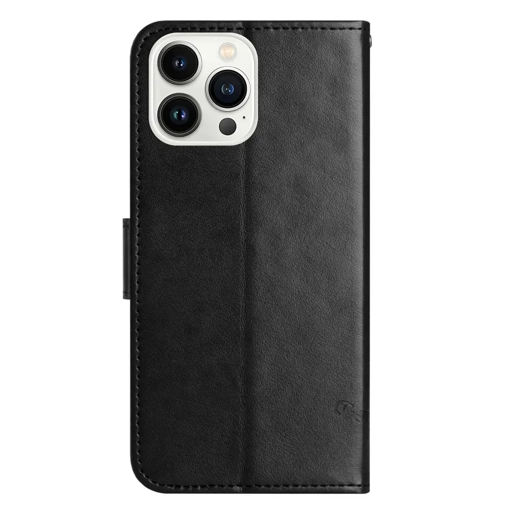 Fekete pénztárca tok Virág iPhone 16 Pro-hoz