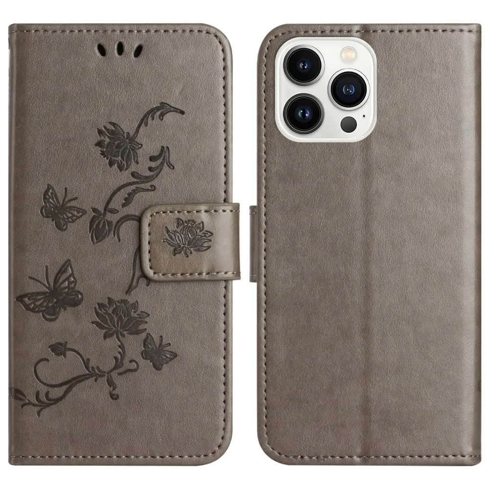 Virágos könyvtáska iPhone 16 Pro Max készülékhez - szürke