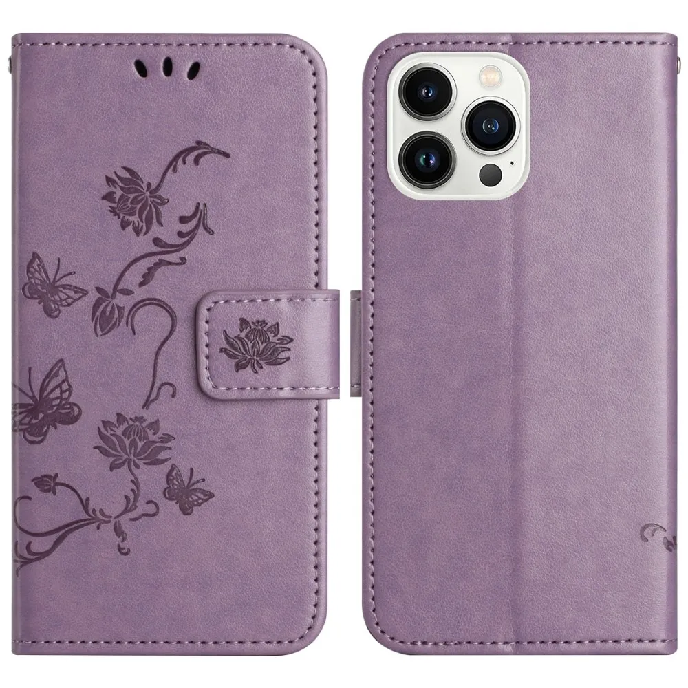 Virágos könyvtáska iPhone 16 Pro Max készülékhez - világos lila