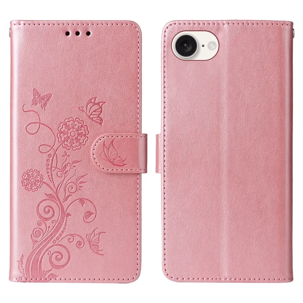 Rózsaszín pénztárca tok Flowery iPhone 16e számára