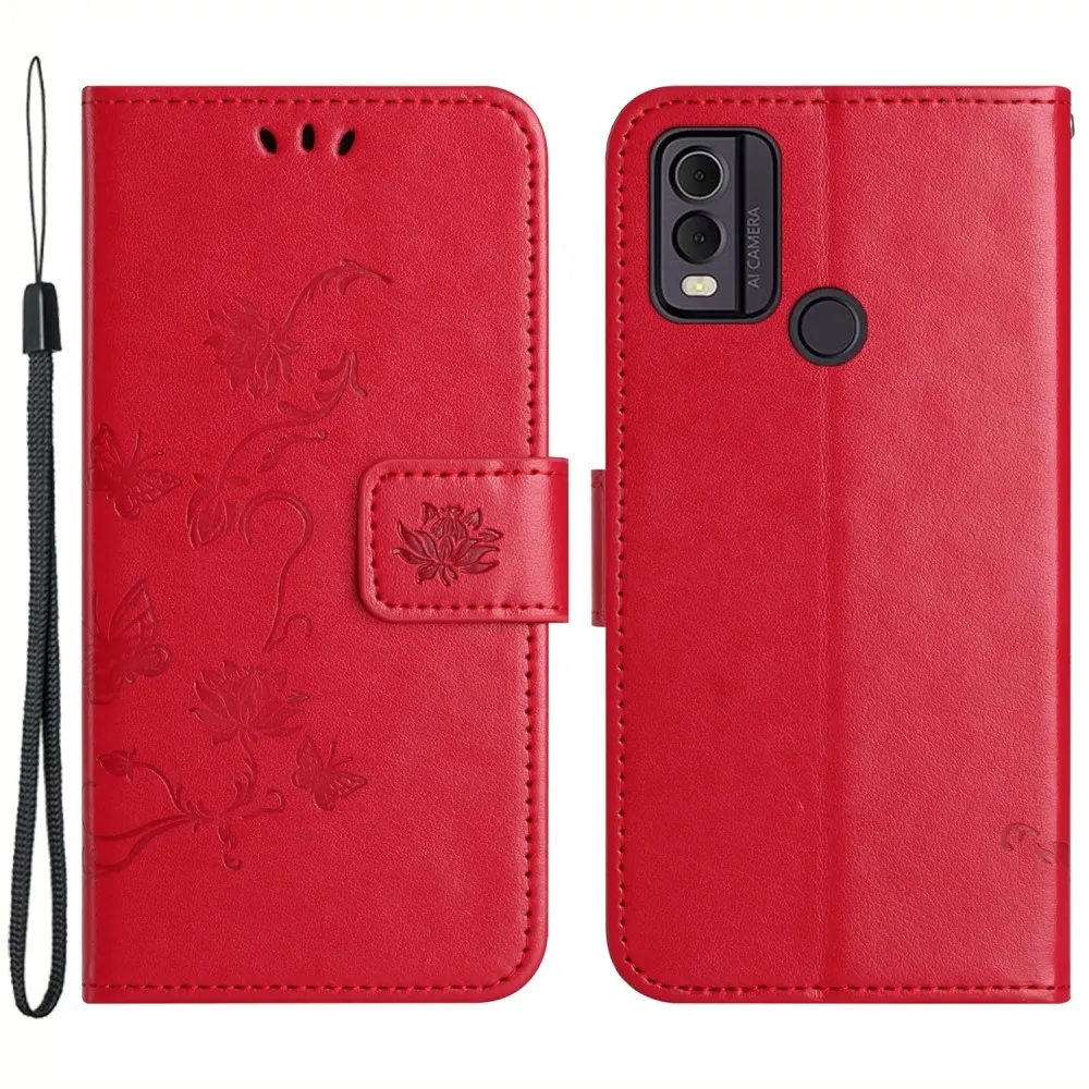 Virágos könyvtáska Nokia C22 készülékhez - piros