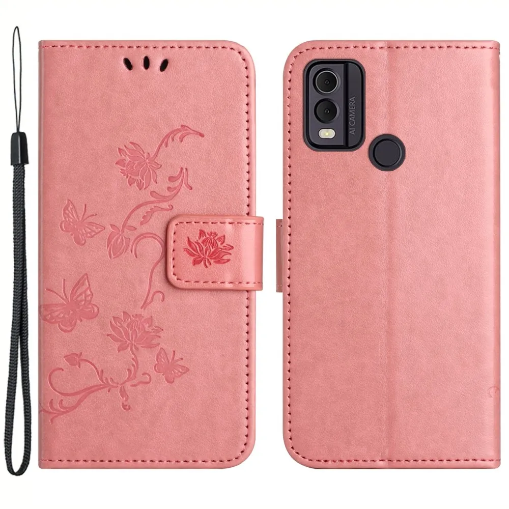 Virágos könyvtáska Nokia C22 készülékhez - rózsaszín