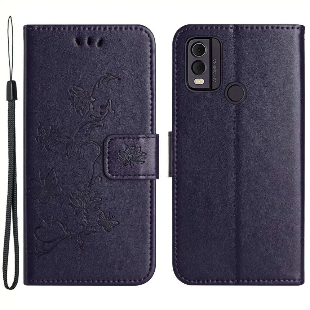 Virágos könyvtáska Nokia C22 készülékhez - sötétlila