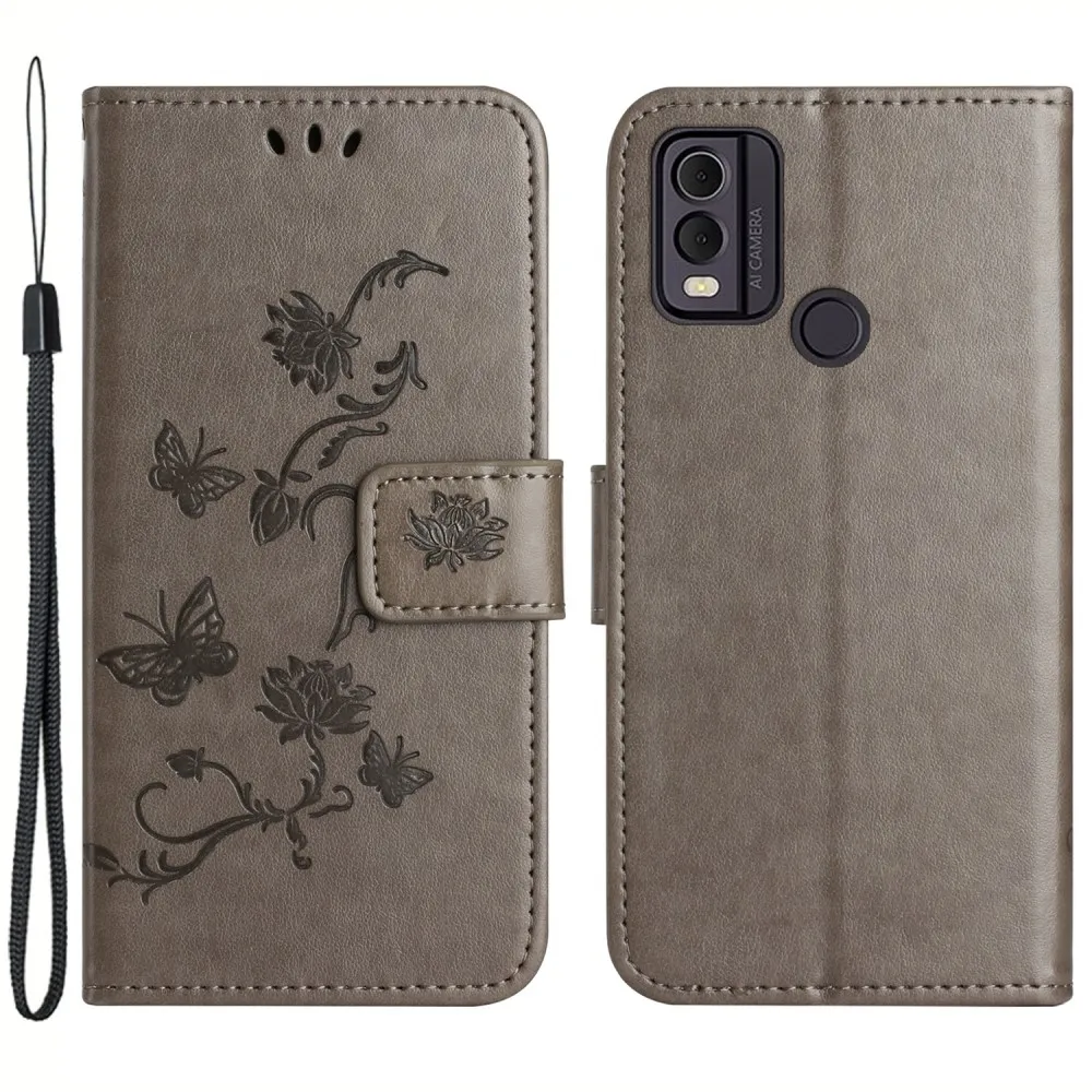 Virágos könyvtáska Nokia C22 készülékhez - szürke