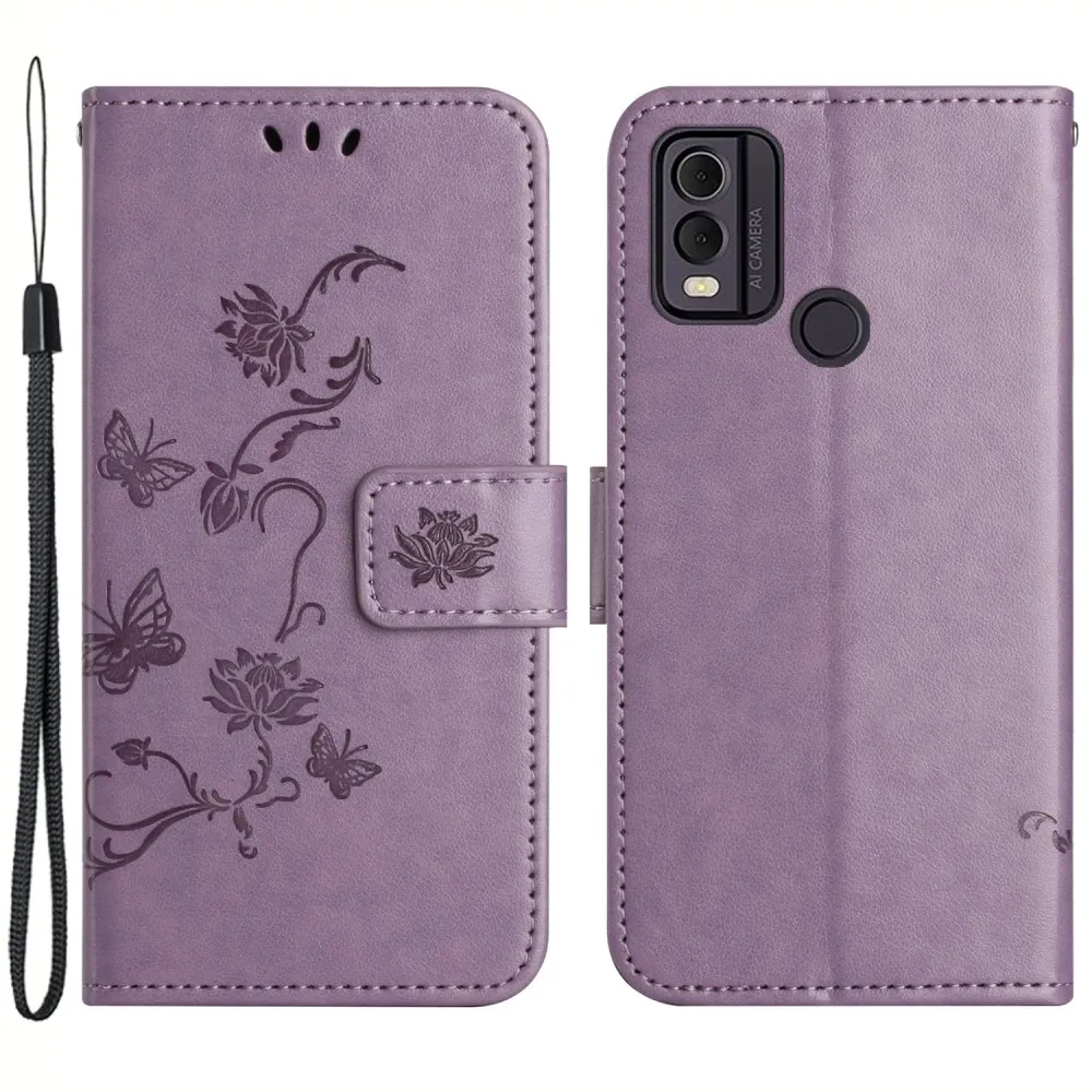 Virágos könyvtáska Nokia C22 készülékhez - világos lila