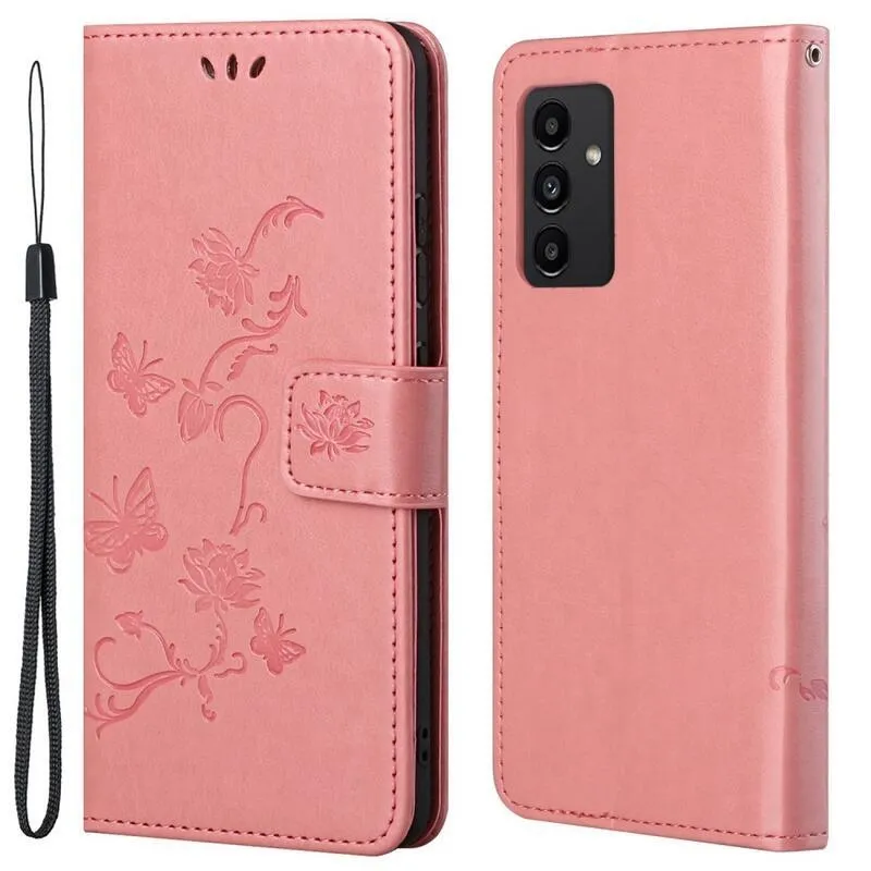 Virágos könyvtáska Samsung Galaxy A13 4G - rózsaszínű
