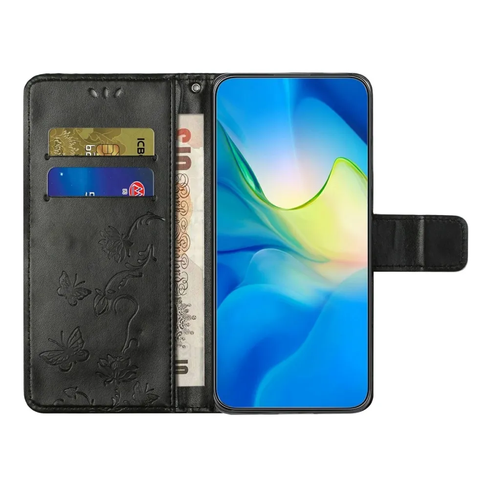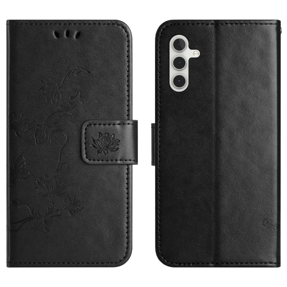 Fekete pénztárca tok Virág Samsung Galaxy A26 5G számára