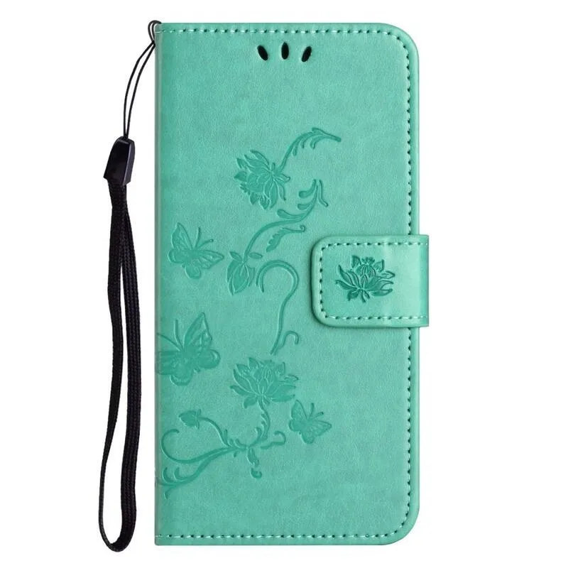 Virág kék-zöld pénztárca tok Samsung Galaxy A34 5G számára