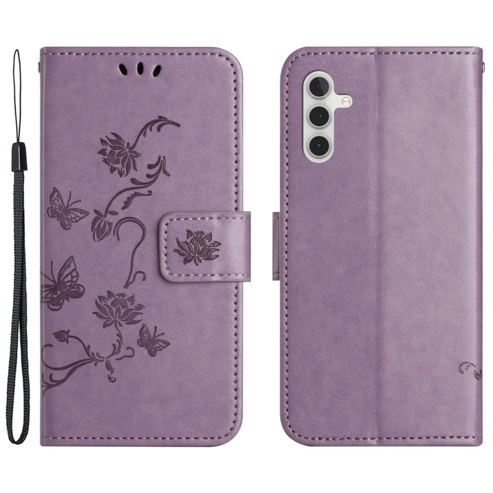Világos lila pénztárca tok Virág Samsung Galaxy A35 5G számára