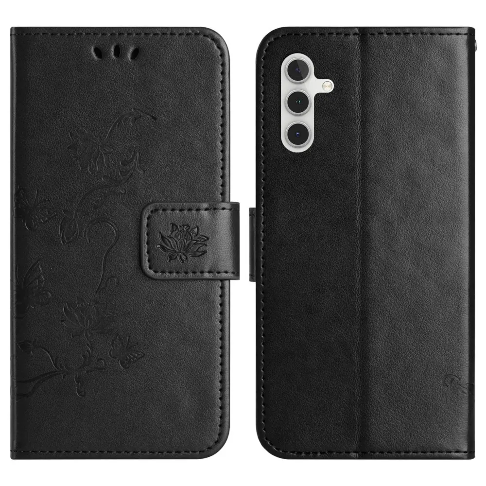 Fekete pénztárca tok Virág Samsung Galaxy A36 5G számára