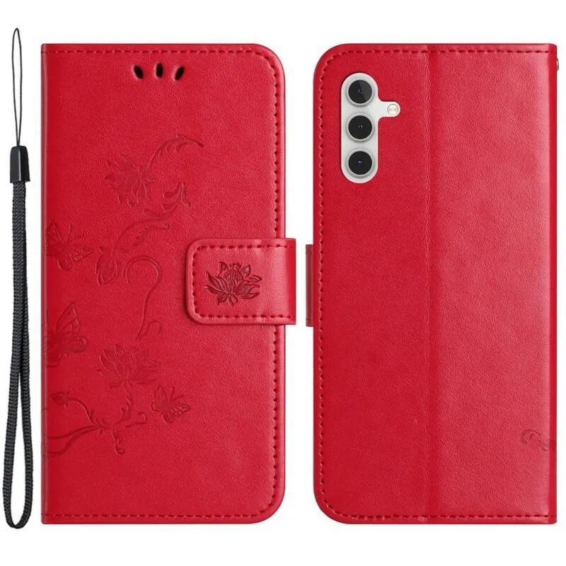 Virágos könyvtáska Samsung Galaxy A54 5G - piros