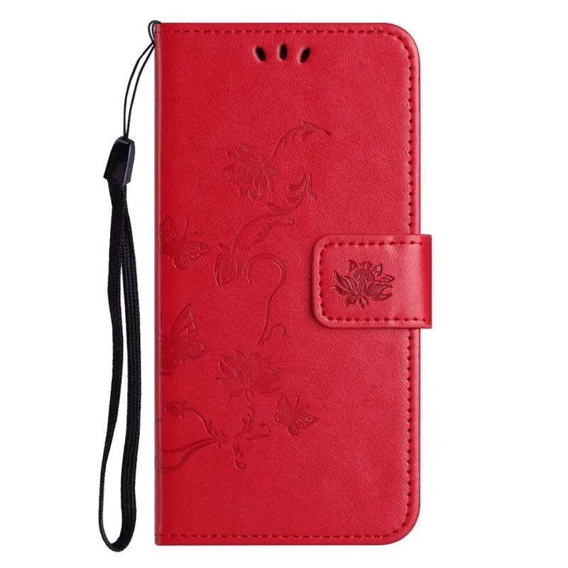 Virág piros pénztárca tok Samsung Galaxy A54 5G számára