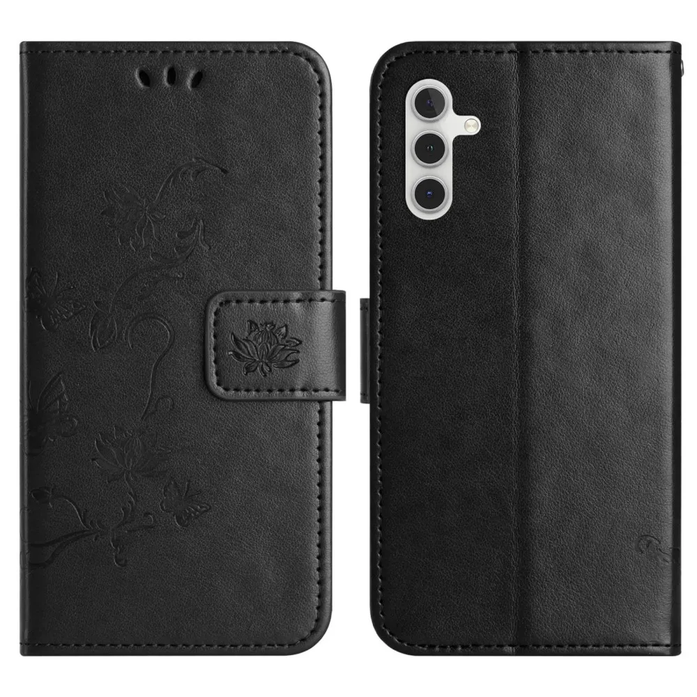 Fekete pénztárca tok Virág Samsung Galaxy A56 5G-re