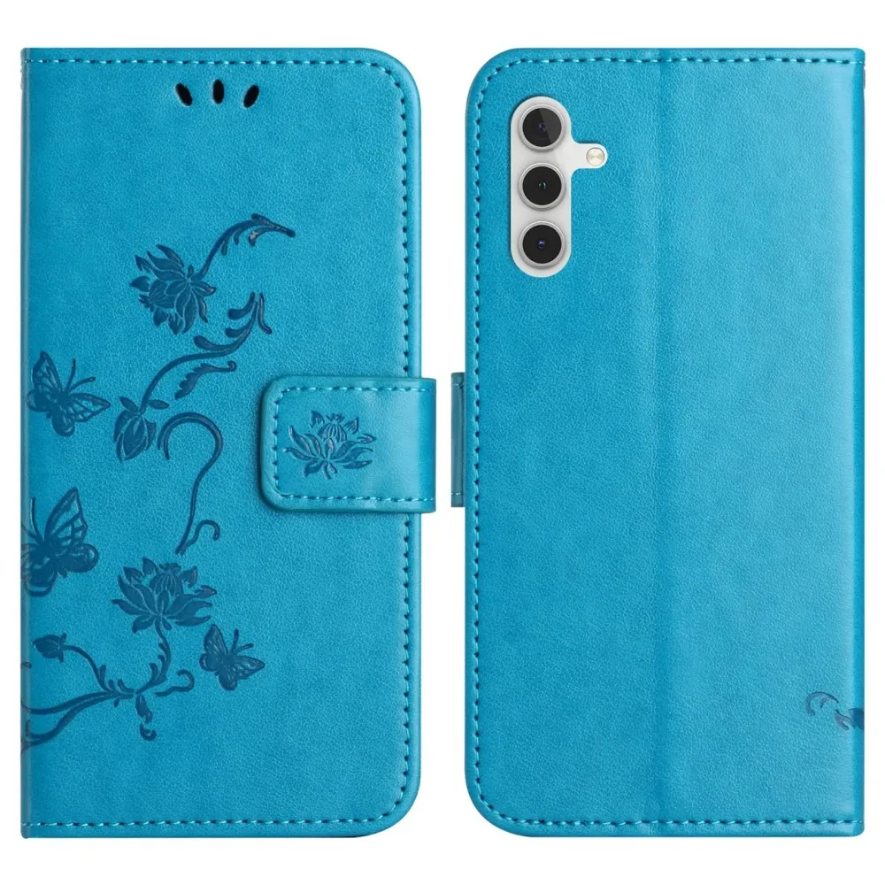 Virágos könyvtáska Samsung Galaxy A56 5G - kék