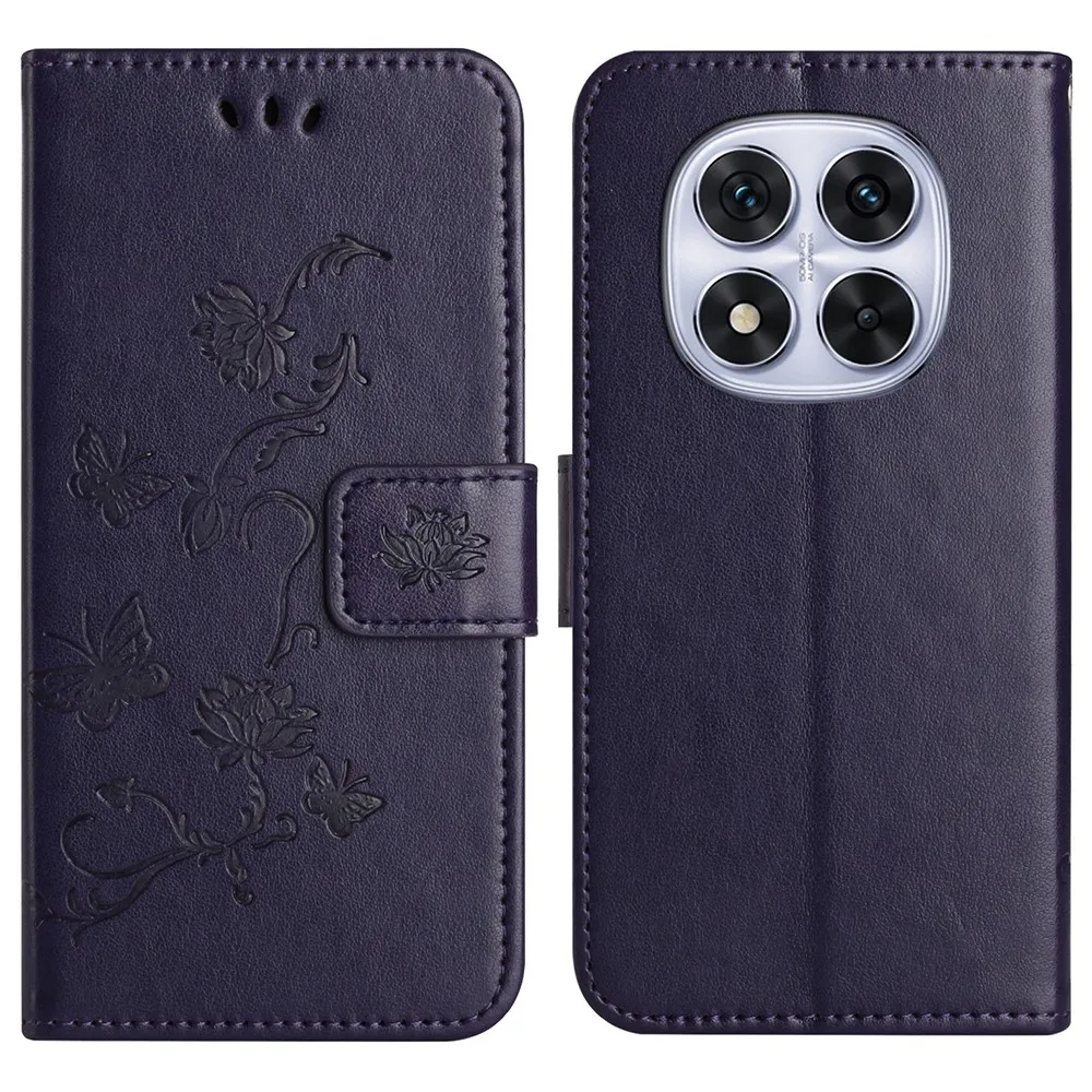 Virágos könyvtáska Xiaomi Redmi Note 14 Pro 5G/Poco X7 5G/Note 14 Pro+ 5G - sötétlila