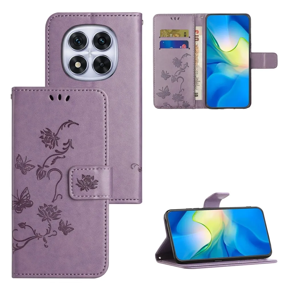 Világos lila pénztárca tok Virág Xiaomi Redmi Note 15 Pro+ 5G/Xiaomi Poco M8 Pro 5G számára