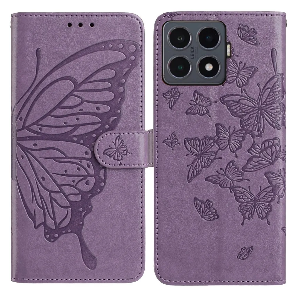 Lila pénztárca tok Virágos pillangó Xiaomi 15T Pro számára