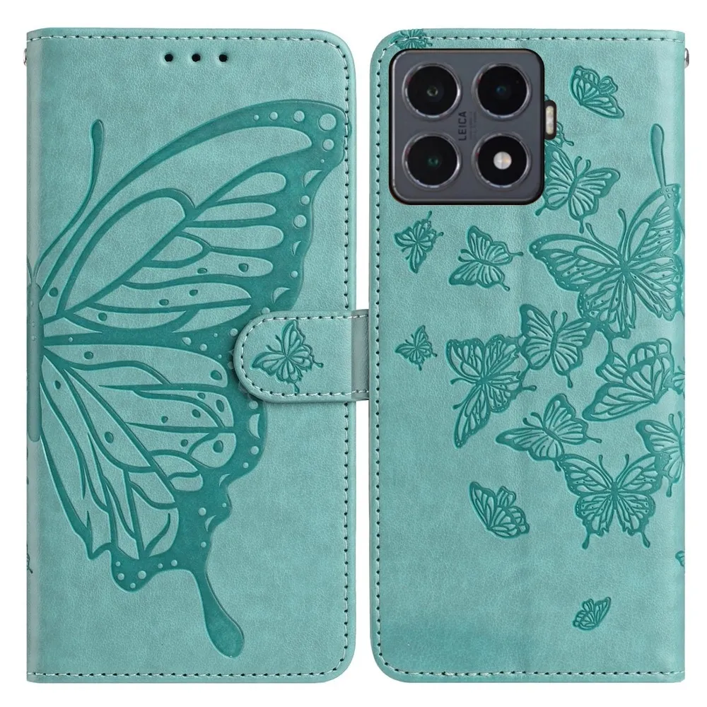 Kék-zöld pénztárca tok Floral Butterfly a Xiaomi 15T Pro számára