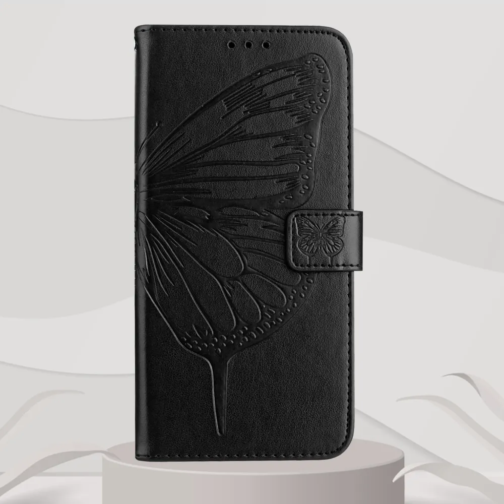 Virágos pillangó könyv tok a Xiaomi Poco X8 Pro Max 5G számára - fekete