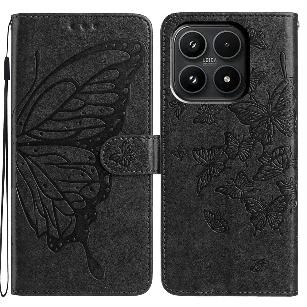 Fekete pénztárca tok Virágos pillangó a Xiaomi 17 számára