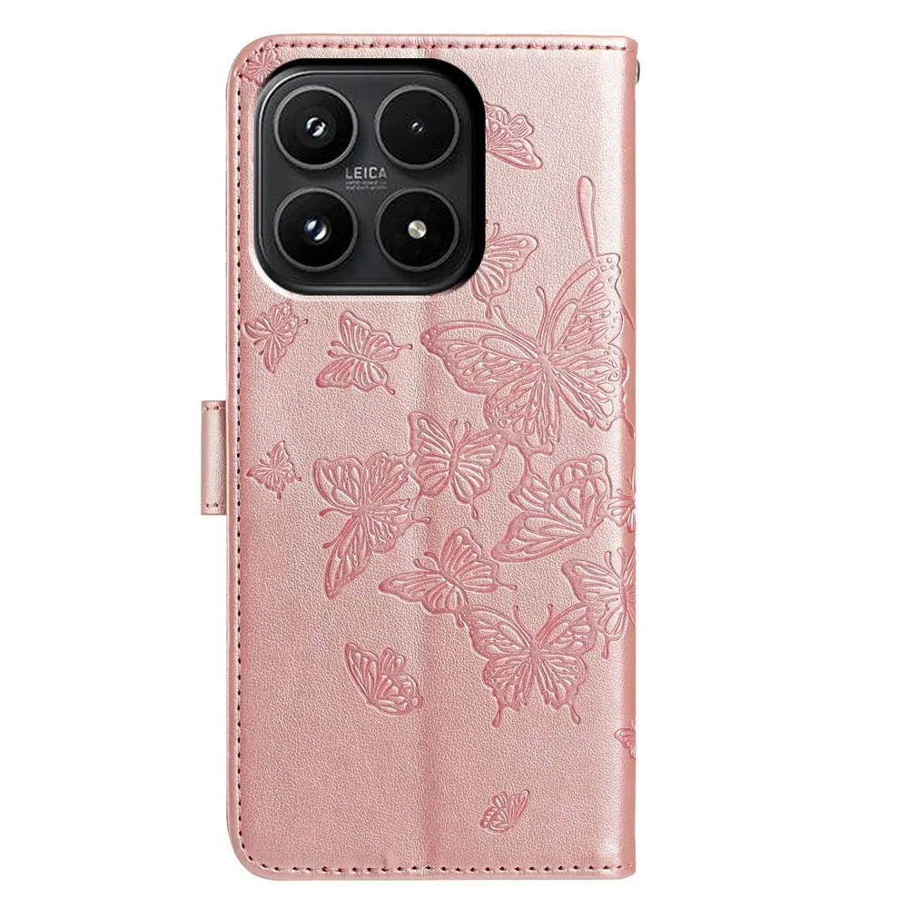 Rózsaszín és arany pénztárca tok Virágos pillangó Xiaomi 17 számára