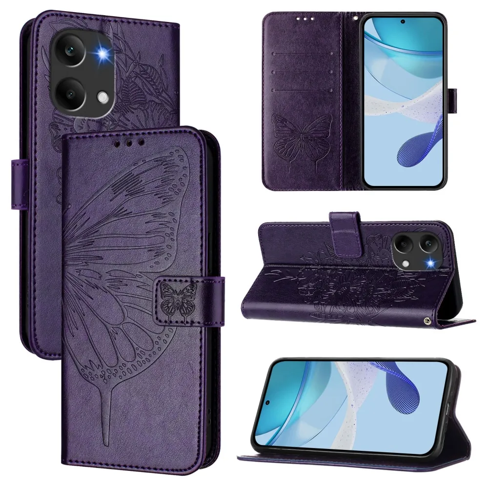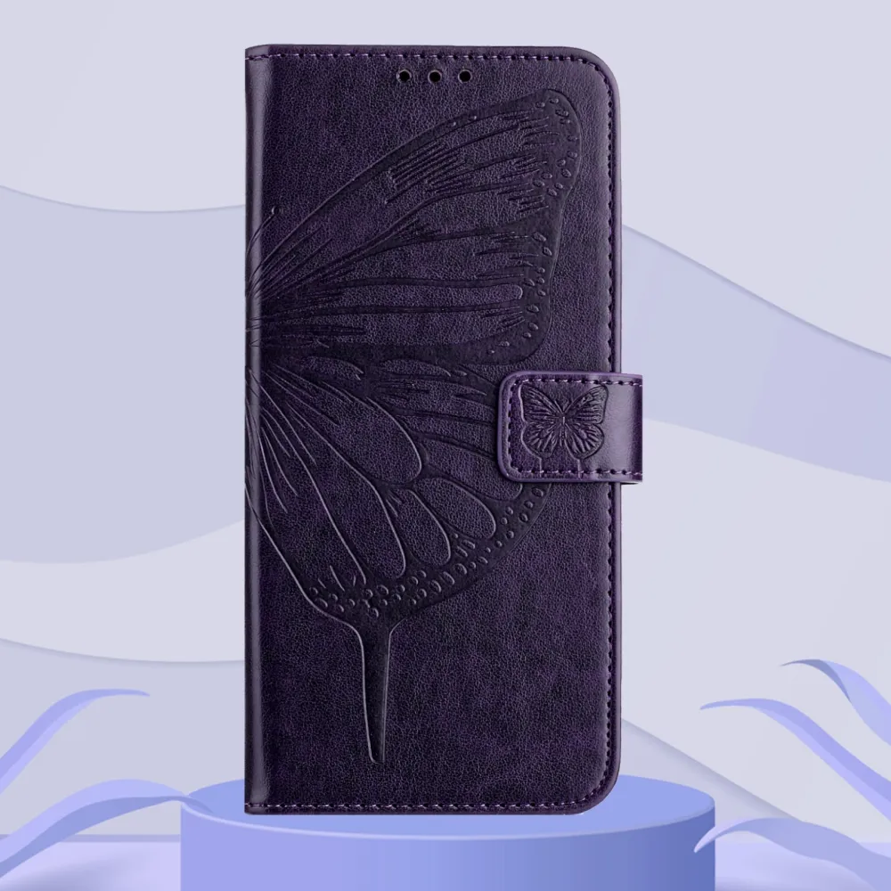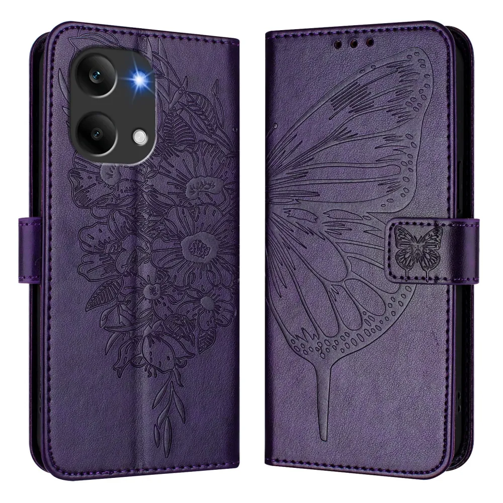 Virágos pillangó könyv tok Xiaomi Poco X8 Pro Max 5G - sötét lila
