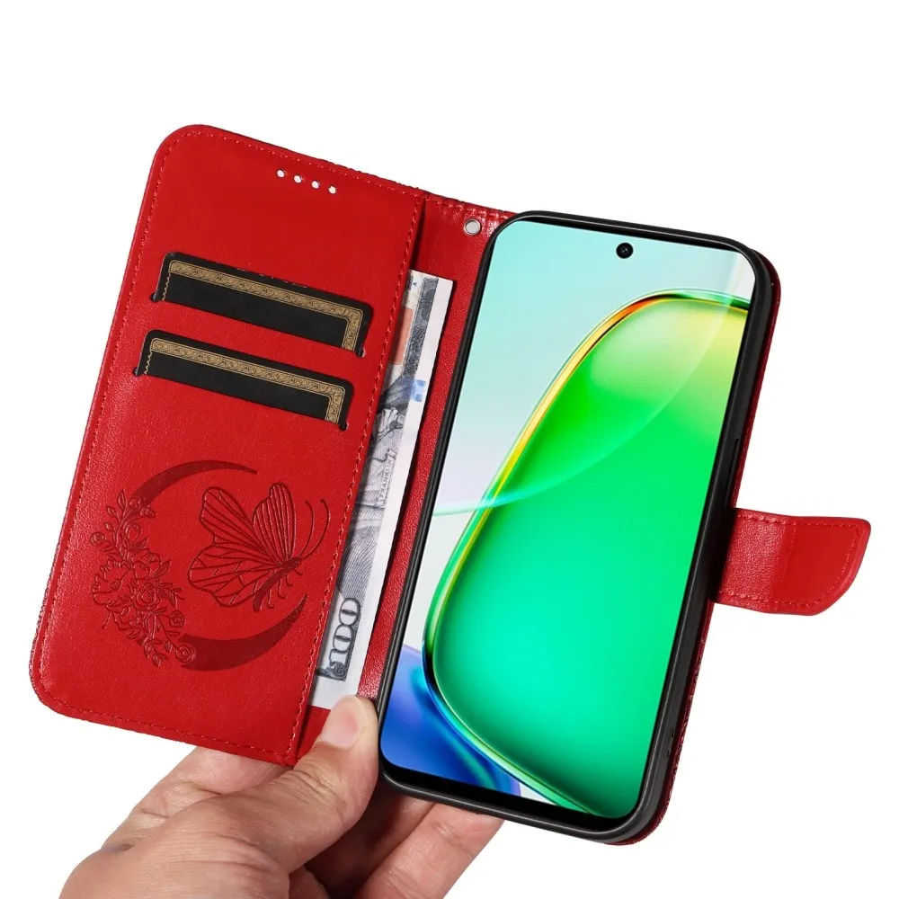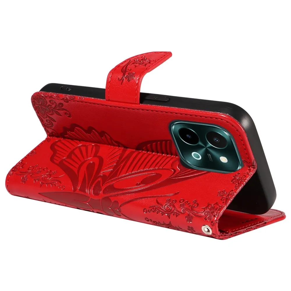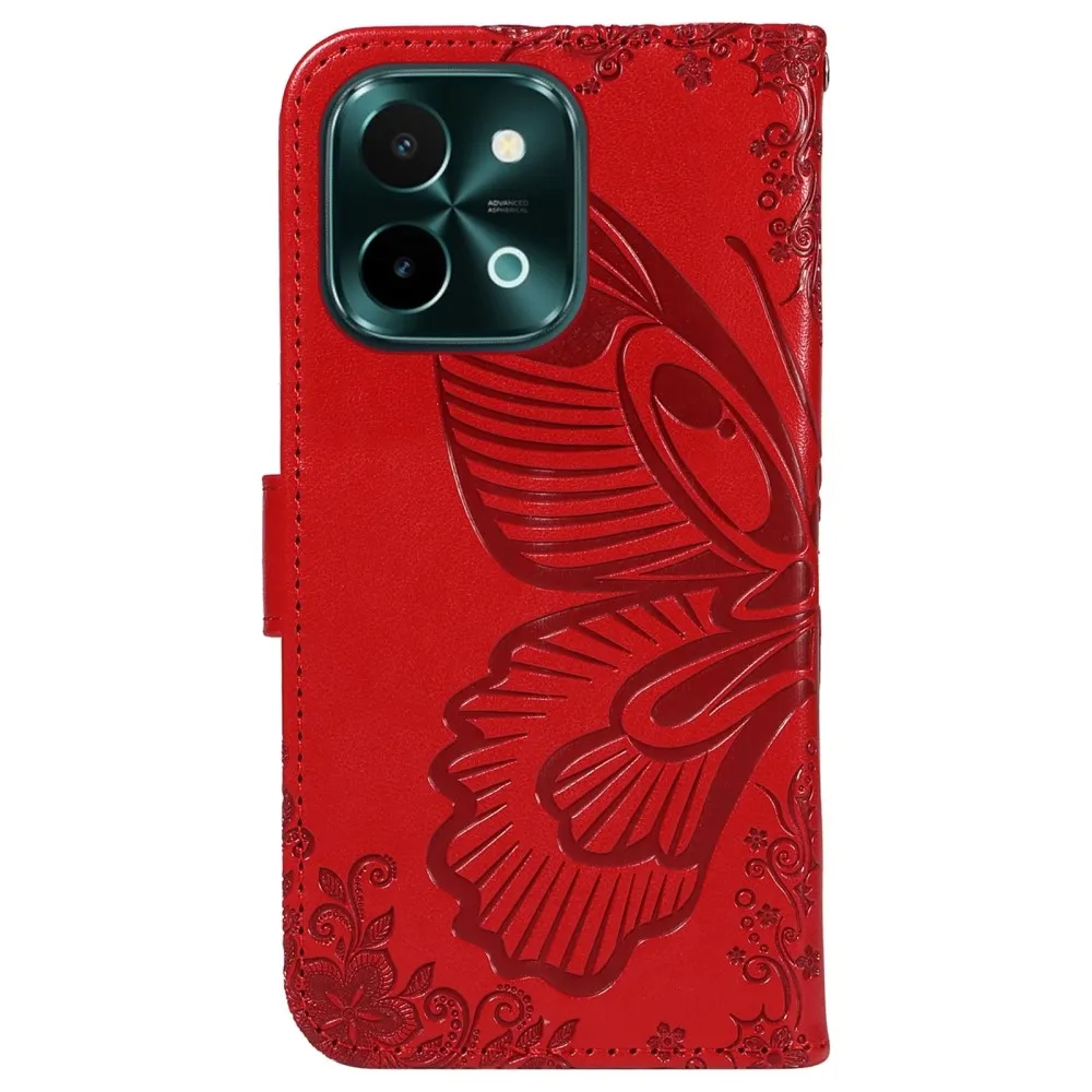 Piros pénztárca tok Virágos pillangó a Vivo Y28 számára
