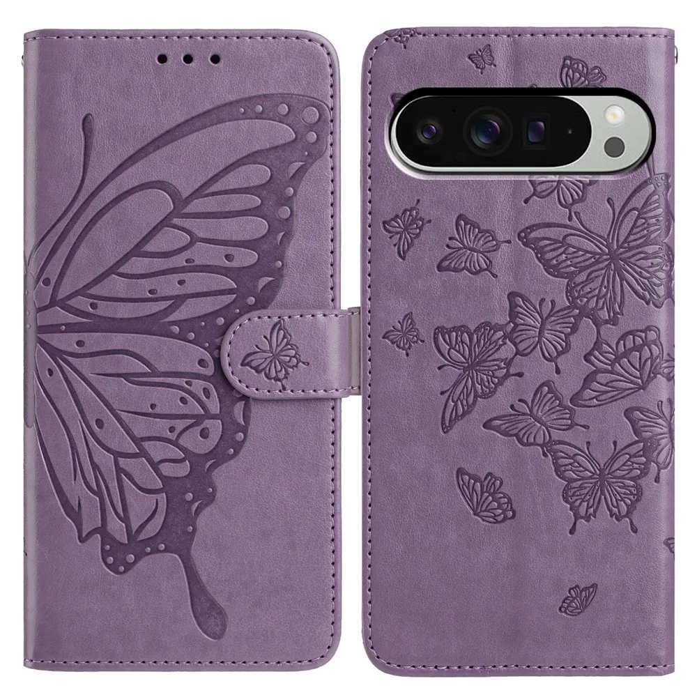 Lila virágos pillangó pénztárca tok a Google Pixel 10 Pro XL/Pixel 9 Pro XL számára