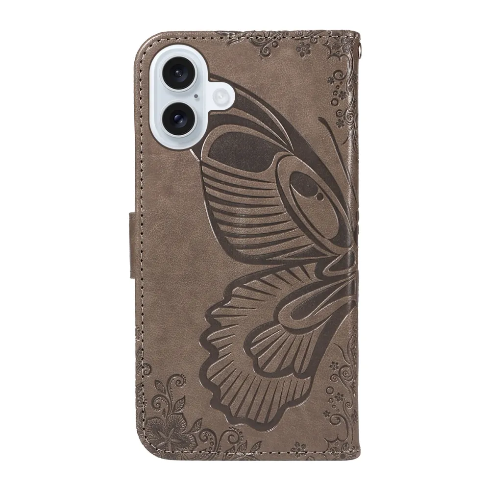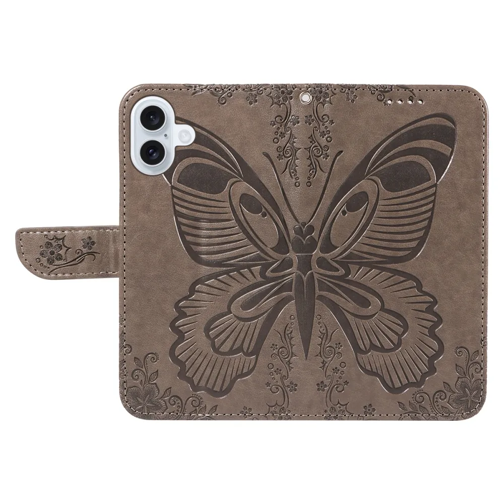 Virágos pillangó könyvtáska iPhone 17 készülékhez - szürke