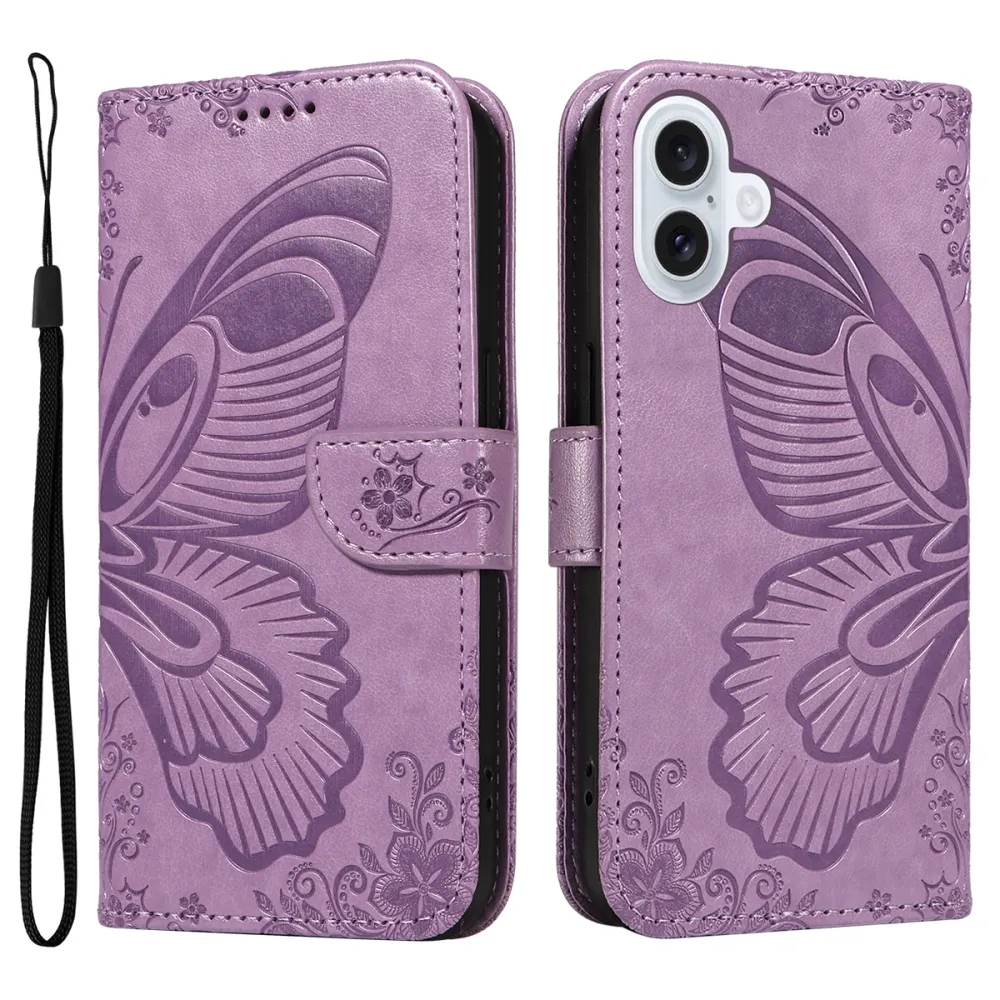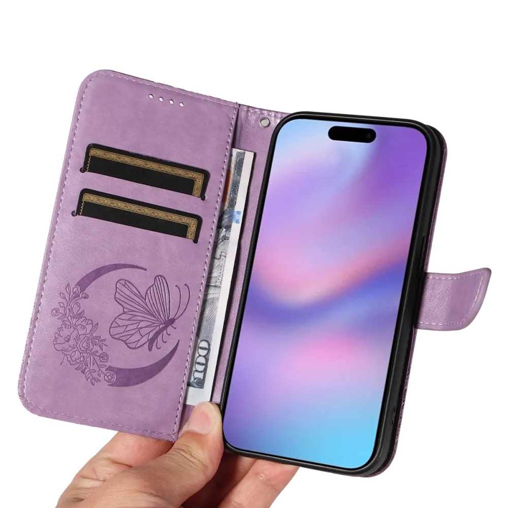 Virágos pillangó könyvtáska iPhone 17 készülékhez - világos lila