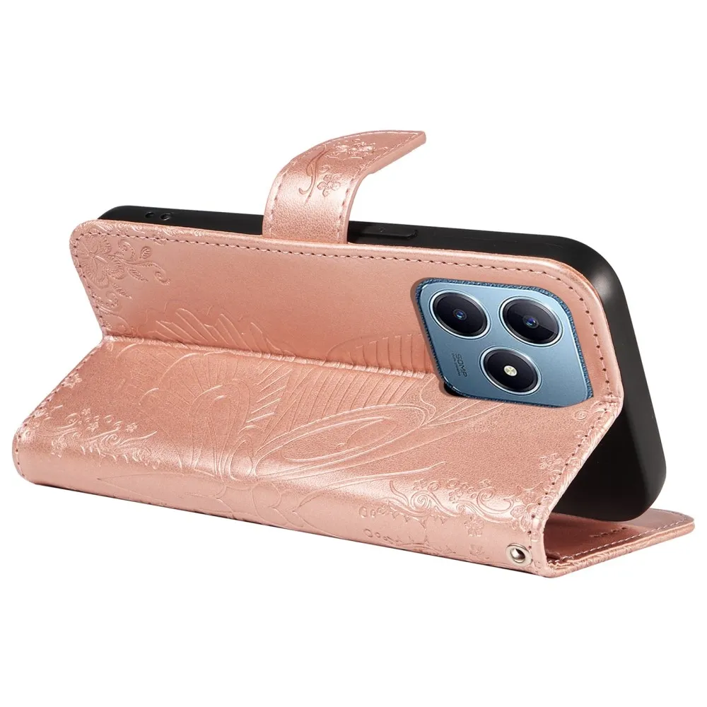 Rózsa arany pénztárca tok Butterfly a Realme C61/C63 mobiltelefonhoz