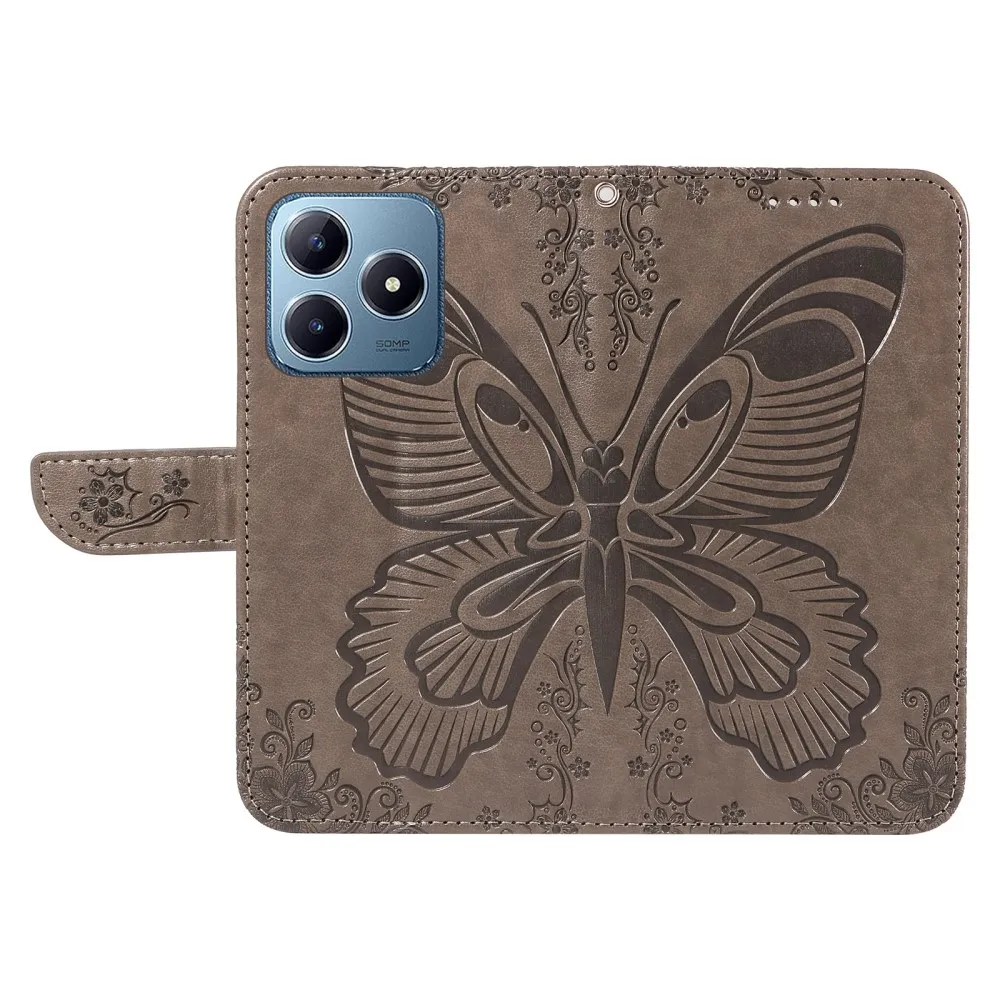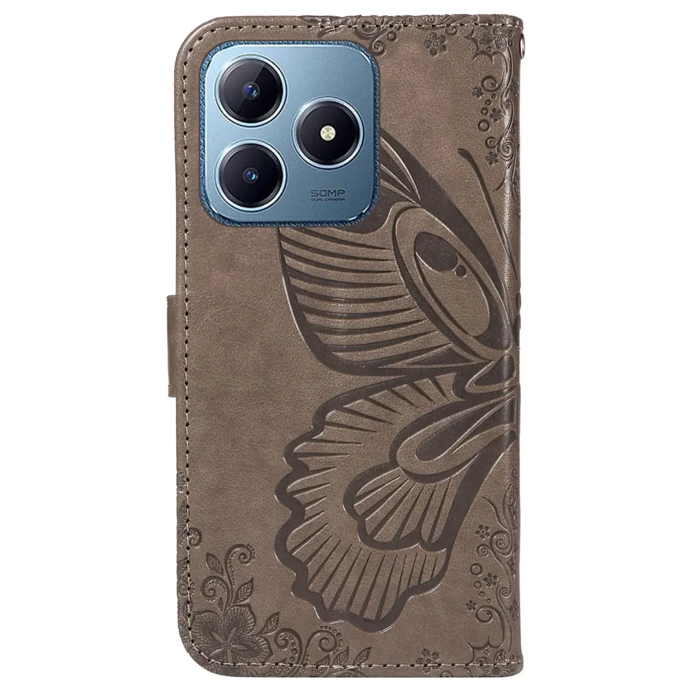 Szürke pénztárca tok Butterfly a Realme C61/C63-hoz