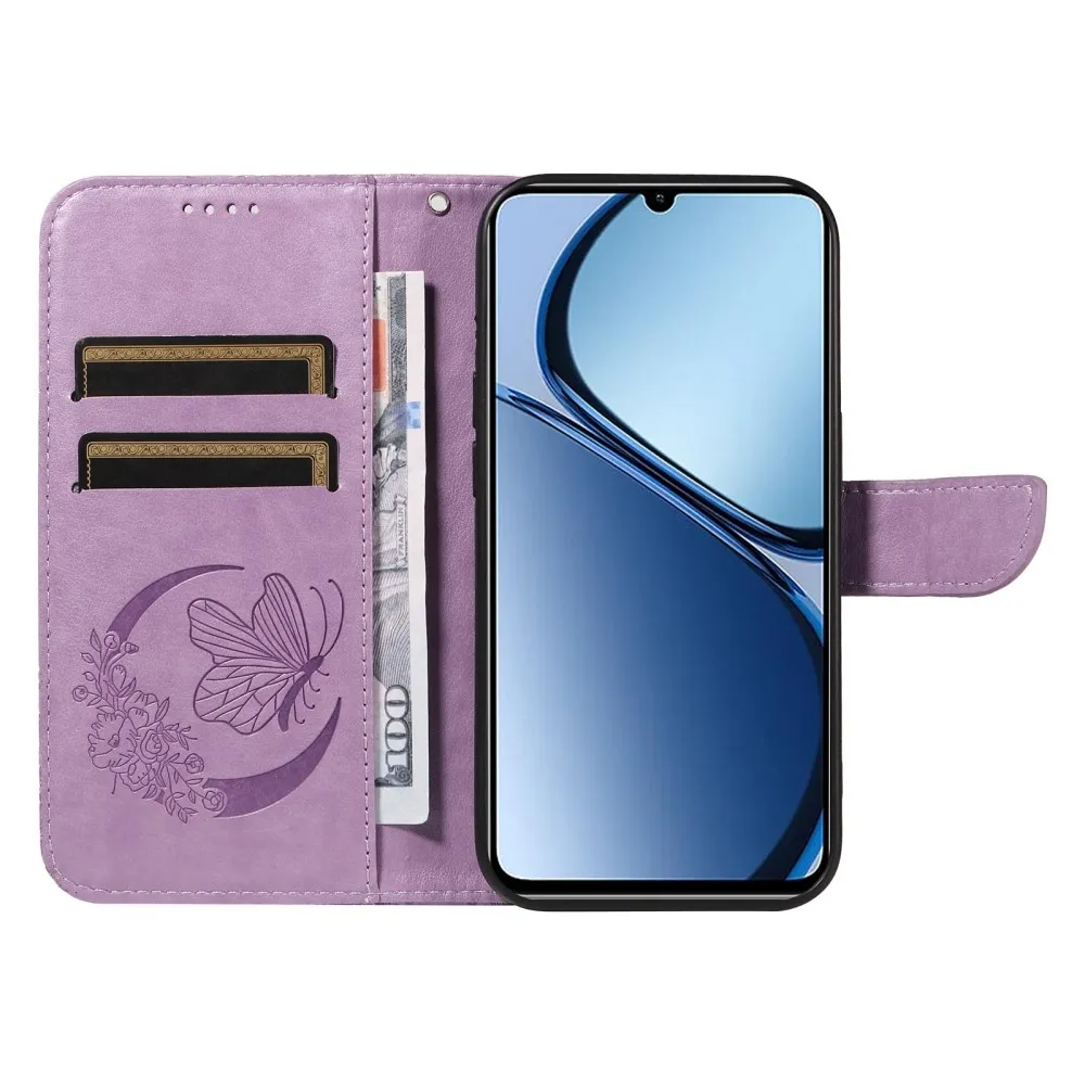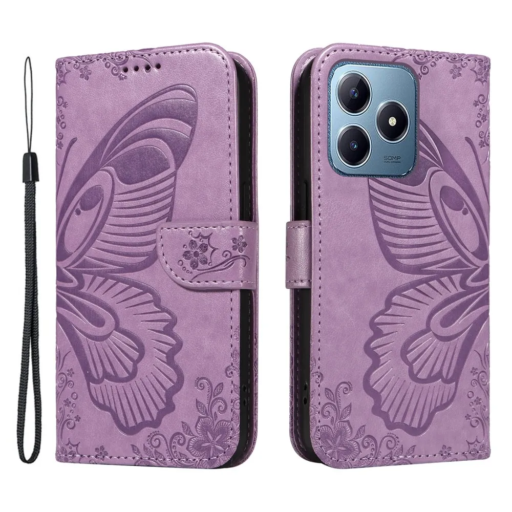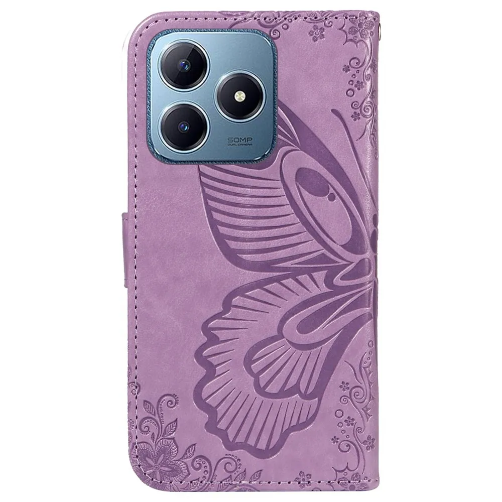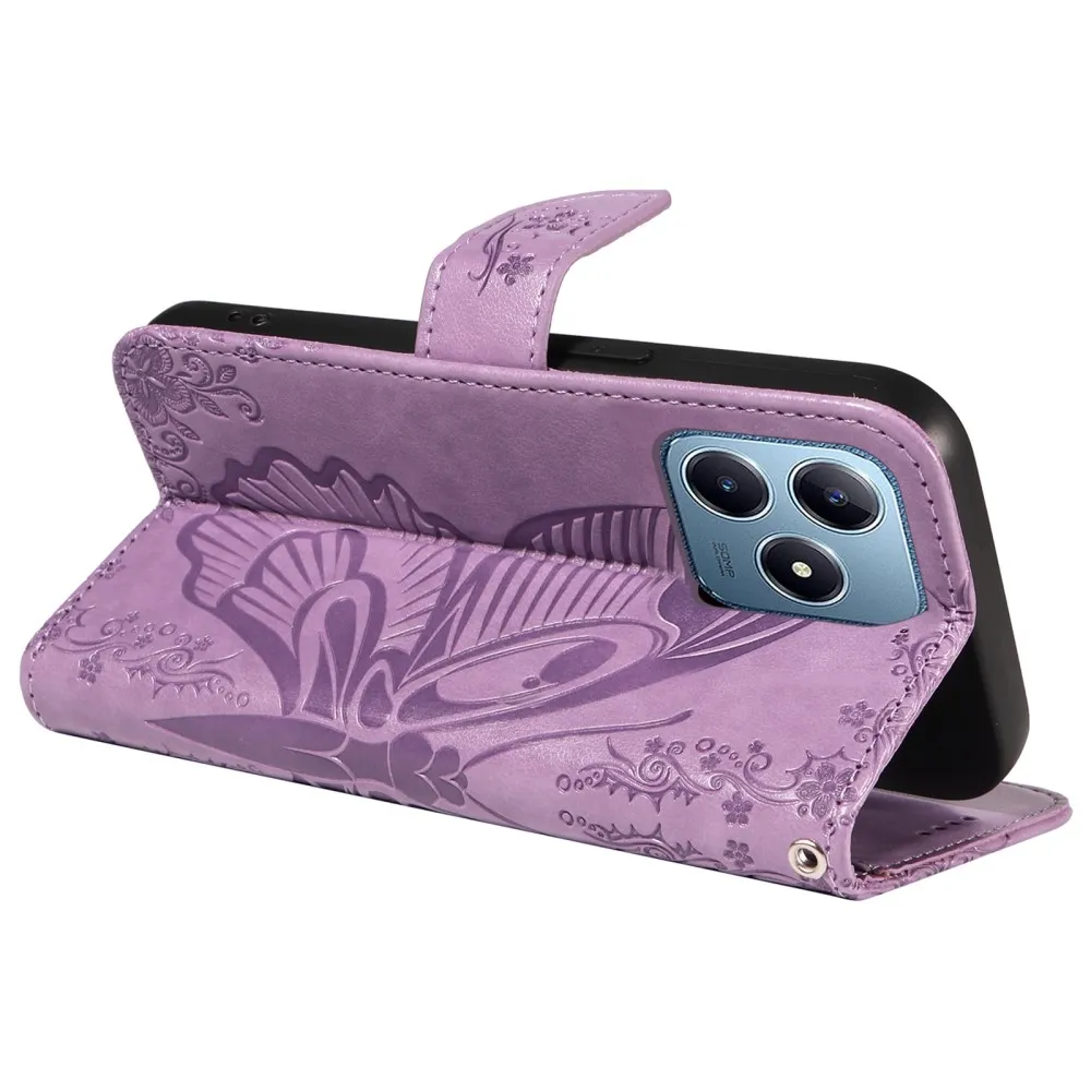 Világos lila pénztárca tok Butterfly a Realme C61/C63-hoz