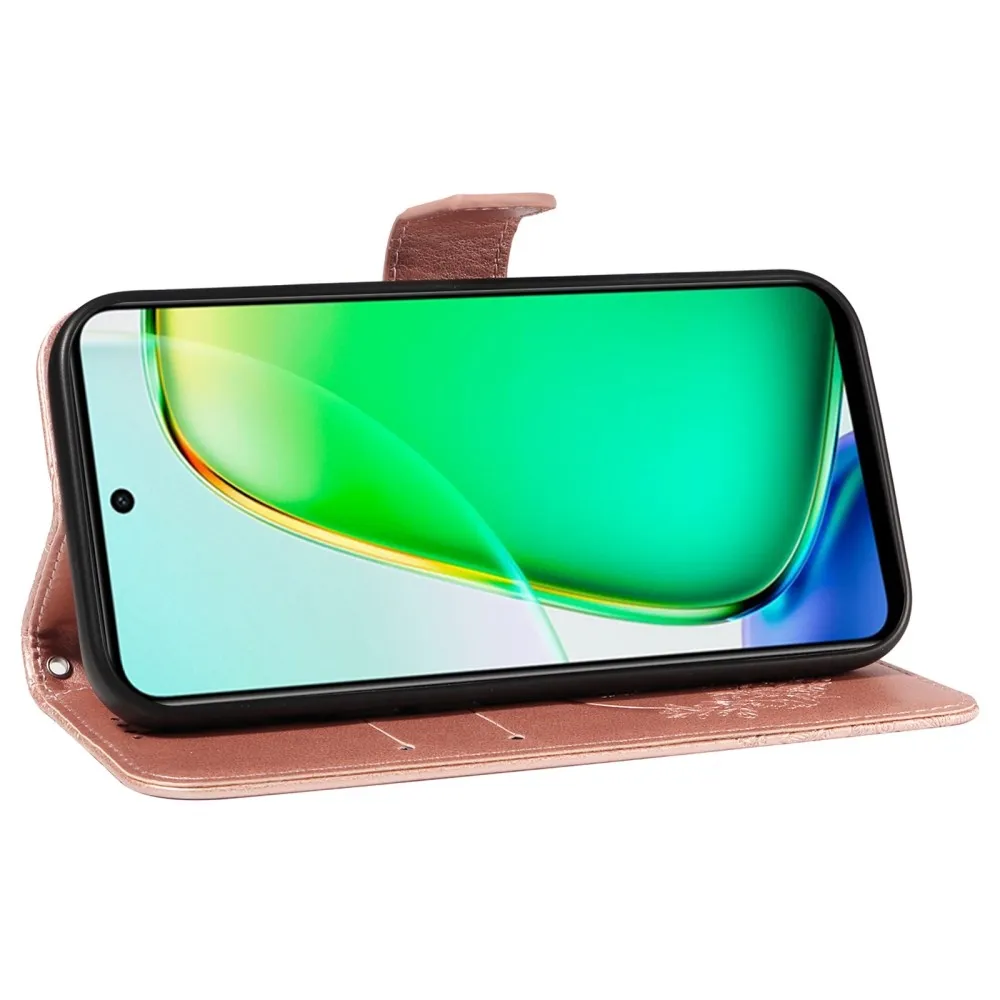 Virágos pillangó könyvtáska Vivo Y28-hoz - rózsaarany