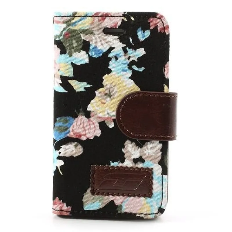 Romantikus pénztárca tok fekete háttérrel és virágokkal iPhone 4 és iPhone 4s készülékhez