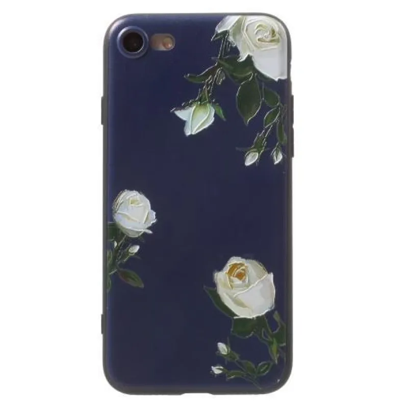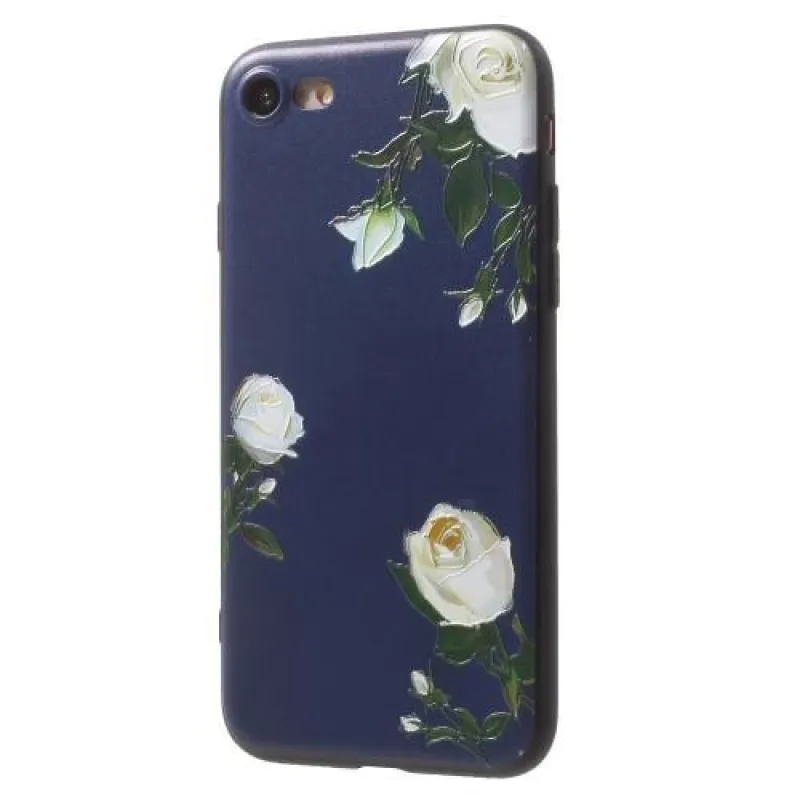 Elegáns fekete TPU gél hátlapi tok fehér virágokkal iPhone 8 és iPhone 7 készülékhez