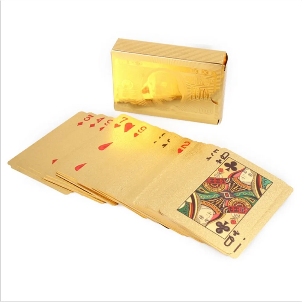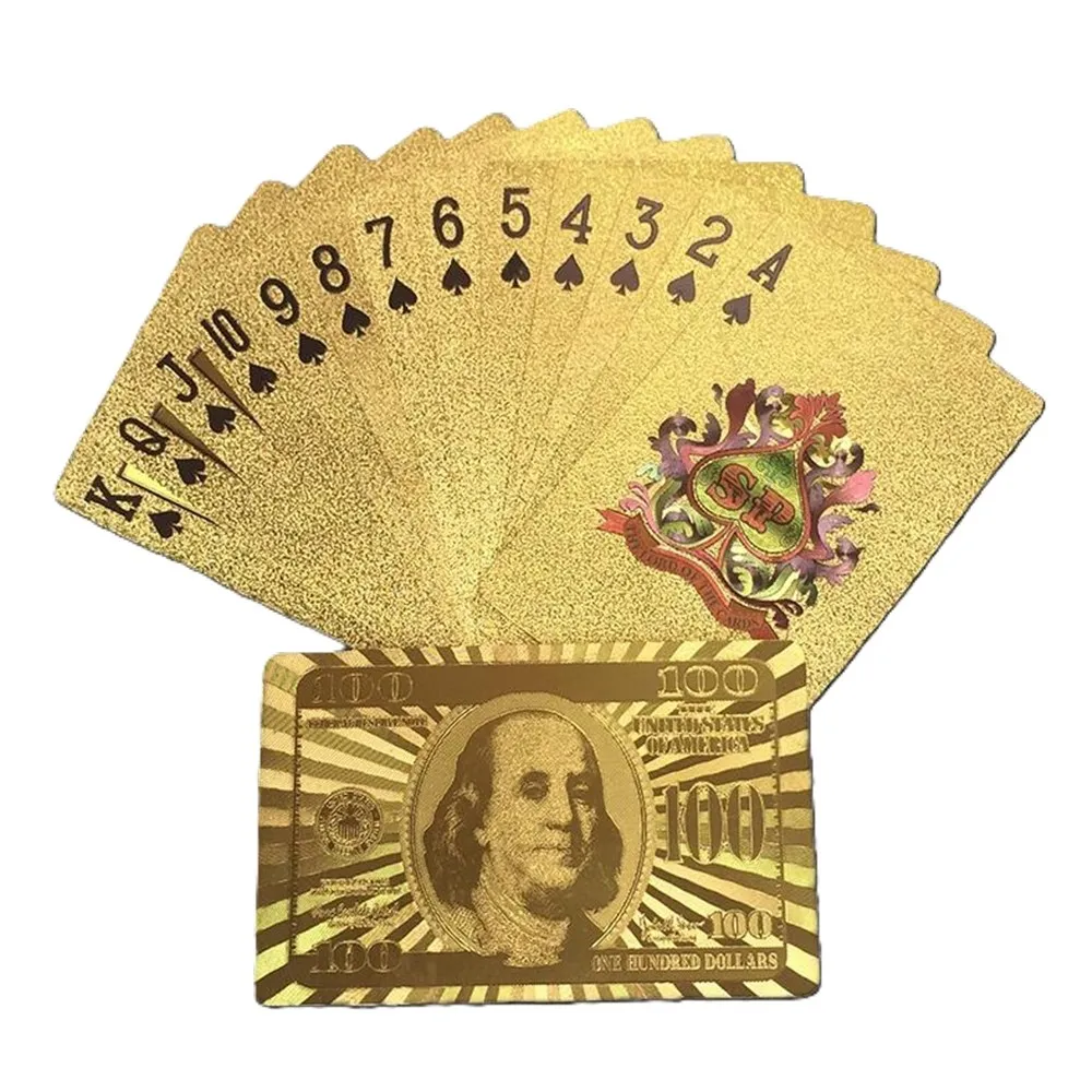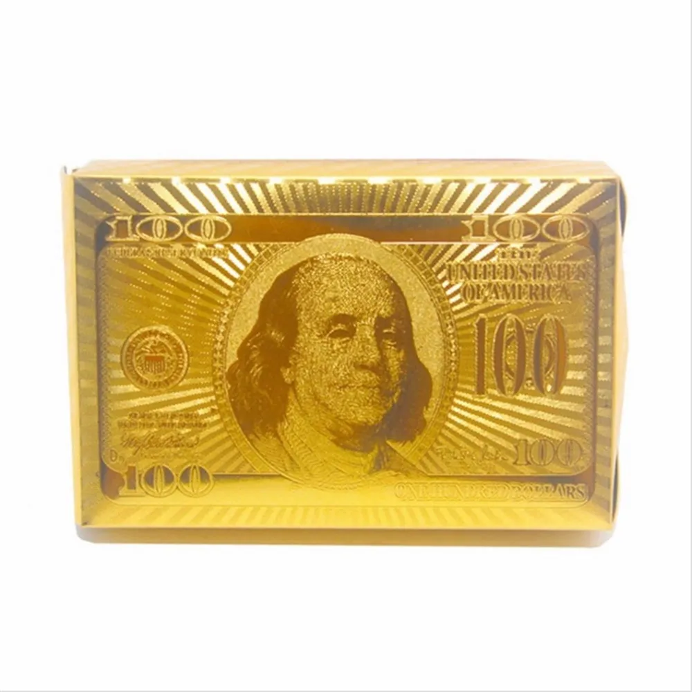 Vízálló műanyag játékkártya 100 dolláros arany kivitelben 54 db stílusos és eredeti kártyacsomag luxus dizájnnal, amely a 100 dolláros bankjegy motívumát idézi. Az arany megjelenés exkluzív hatást kölcsönöz, amely feldobja az otthoni kártyapartit, a pókerestet vagy a baráti összejöveteleket.