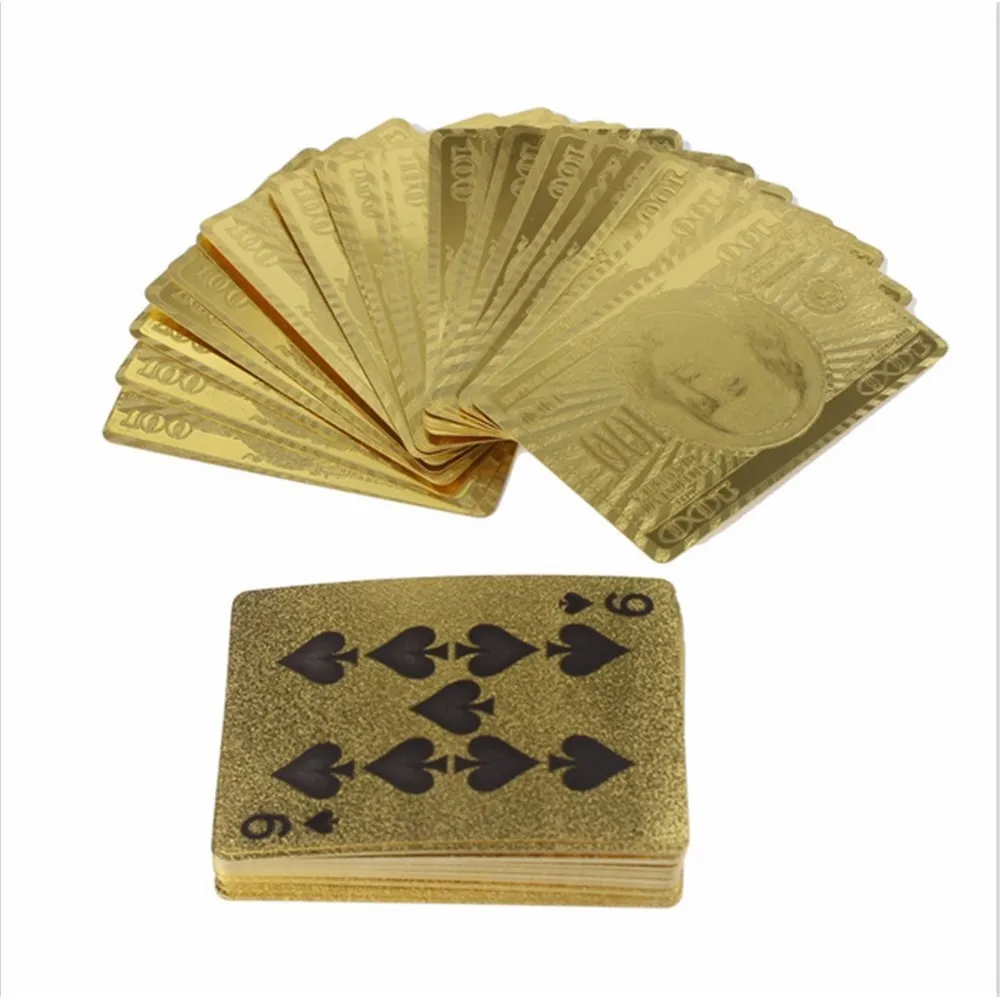 Kártyák száma: 54 db Anyag: műanyag Kivitel: arany 100 dolláros motívum Tulajdonságok: vízálló, mosható