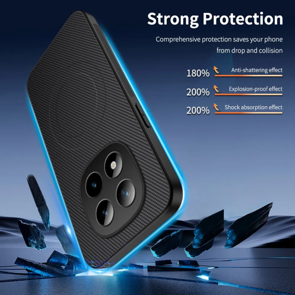 A modern és strapabíró, fekete színű, karbonhatású WLF MagSafe telefontok & Xiaomi Redmi Note 15 Pro+ 5G/Xiaomi Poco M8 Pro 5G nemcsak stílust, hanem magas szintű funkcionalitást is kínál. Masszív kidolgozása megbízható védelmet biztosít az ütések, karcolások és a normál kopás ellen, míg a vékony profil megőrzi a készülék elegáns formáját. Ez a mobiltok a MagSafe technológia támogatására készült, amely lehetővé teszi az egyszerű vezeték nélküli töltést és a kompatibilis tartozékok használatát. Csúszásmentes felületének köszönhetően a tok jól érzi magát a kézben, miközben védi a telefont a mindennapi használat során.