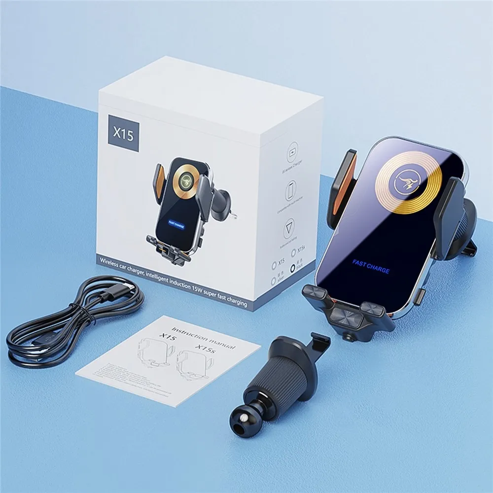 Vezeték nélküli autós töltő automatikus telefontartóval és akár 15 W teljesítménnyel a kényelmes töltéshez vezetés közben.
