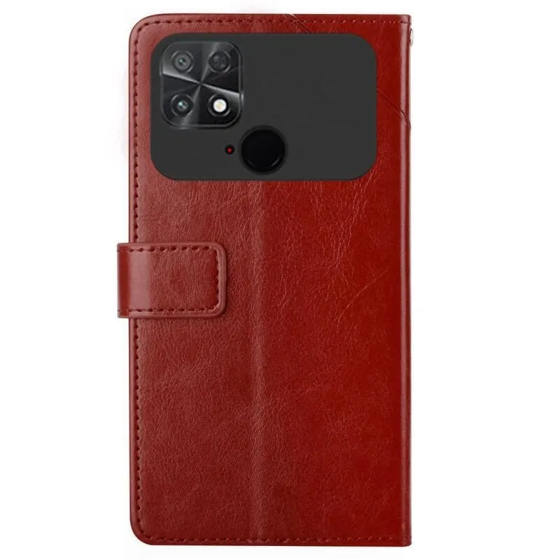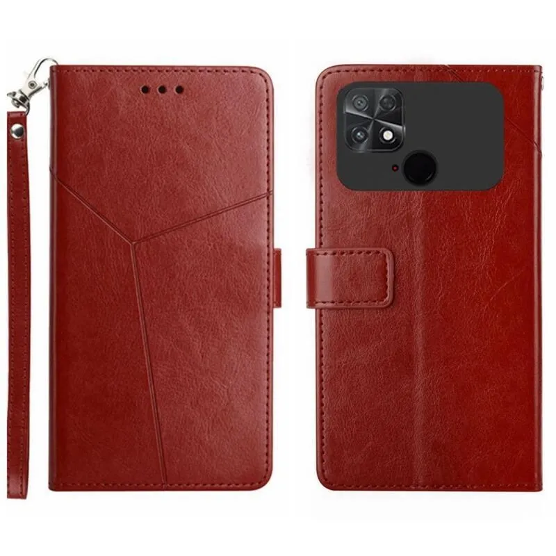 Y-Line PU bőr pénztárca tok a Xiaomi Poco C40 készülékhez - barna